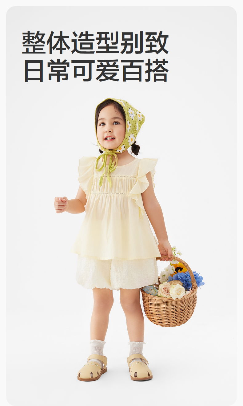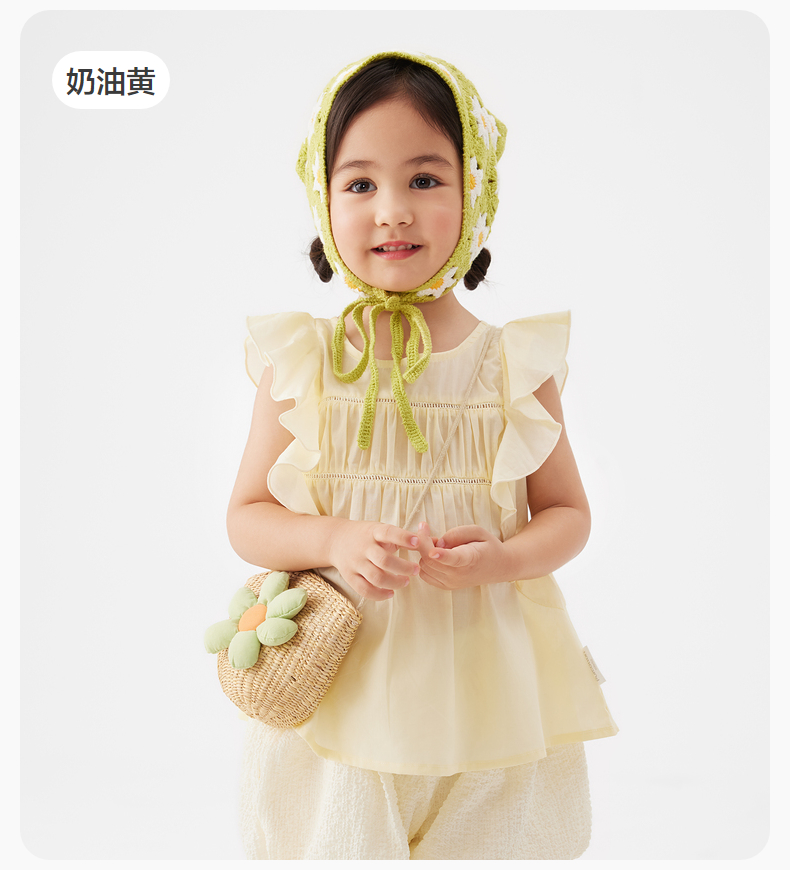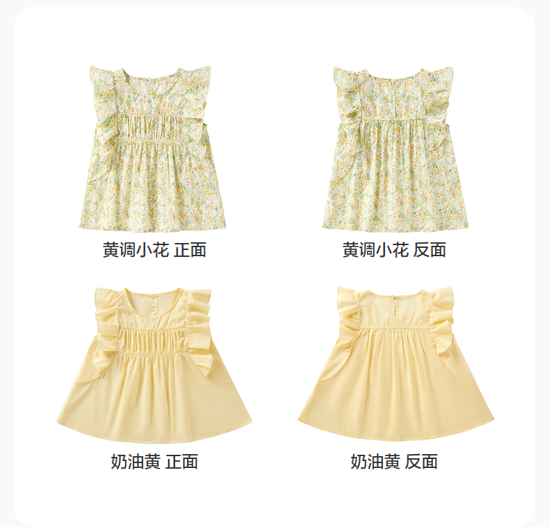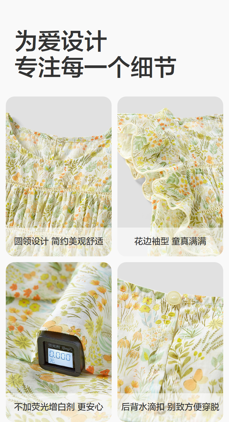 全棉時代女童襯衫短袖夏裝新款100S花邊袖兒童碎花襯衣套頭衫