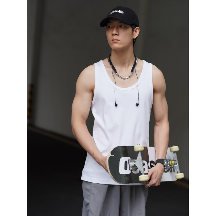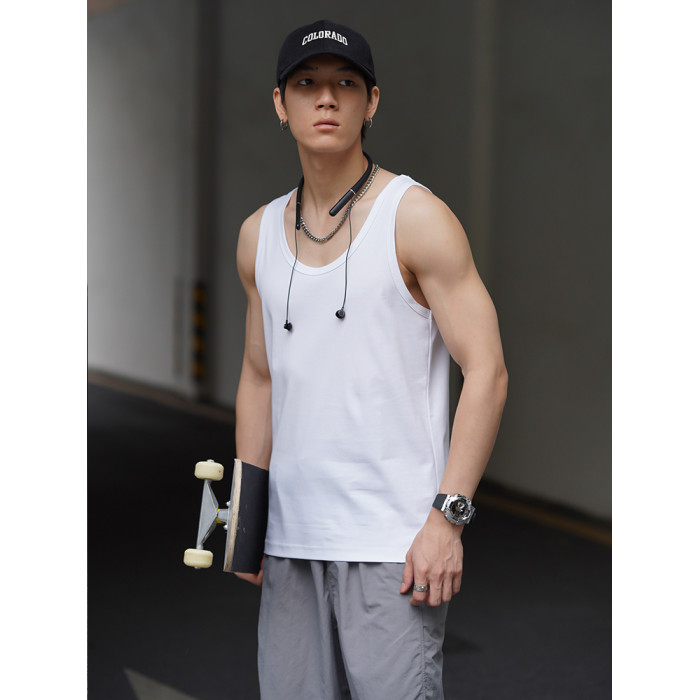 50支新疆長絨純棉運動健身三本針夏季純白色涼感無袖男士打底背心