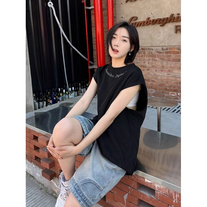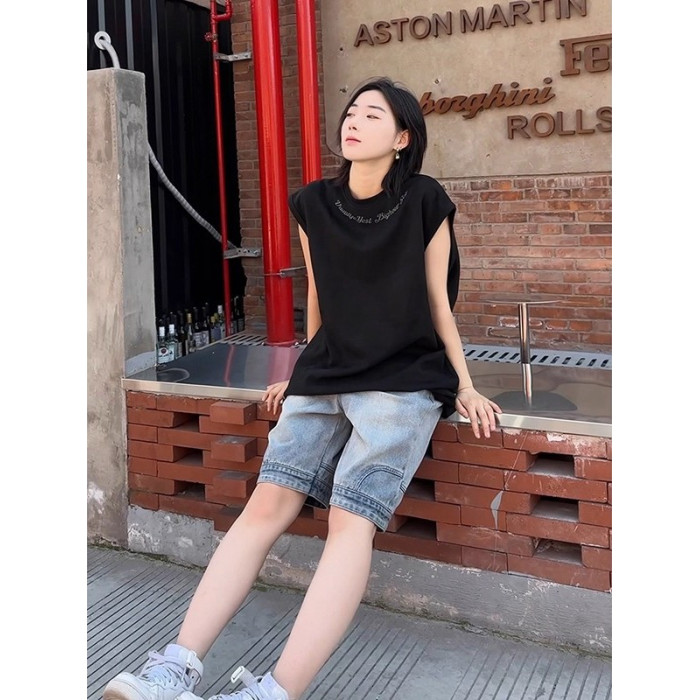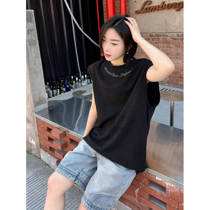 倉石一樹街頭字母美式運動背心男夏季潮牌痞帥炸街無袖t恤上衣潮