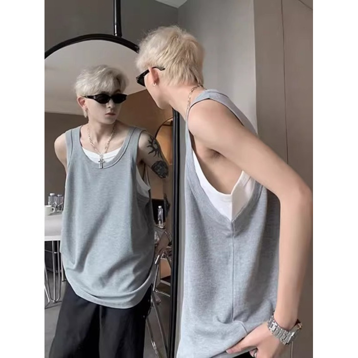 特大碼300斤美式復古無袖背心T恤男女夏季設計感休閒曡穿坎肩上衣