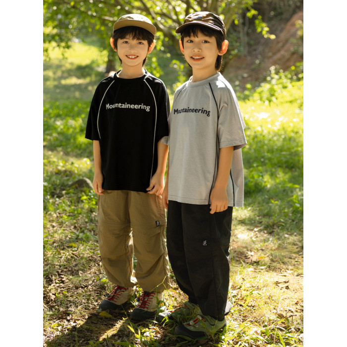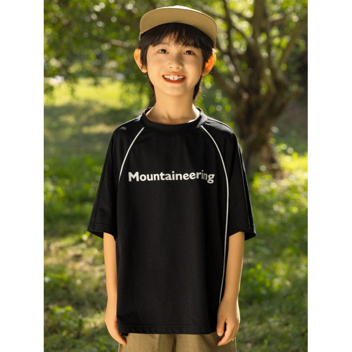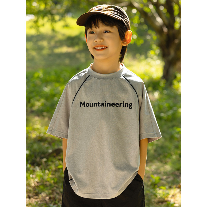 男童插肩短袖運動上衣兒童夏季速乾T恤山系童裝抗紫外線戶外體恤