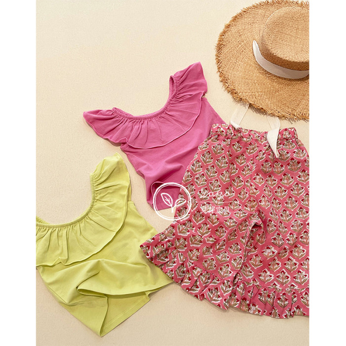 5N芽芽寶貝日本Pippi Lotta春夏女童舒適多巴胺彩色條紋背心短袖