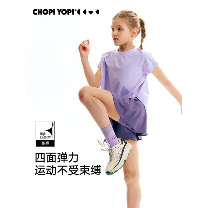 chopiyopi【洞洞皮】女童圓弧下擺基礎短袖T恤夏季新款防曬運動T