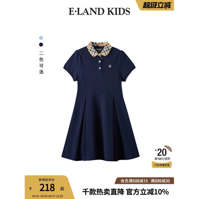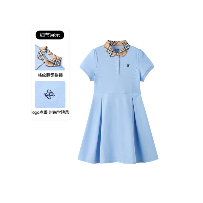 eland kids衣戀童裝女童連衣裙2025年春夏學院格紋百褶裙開學禮服