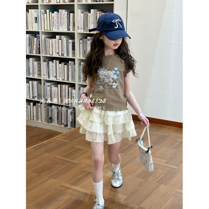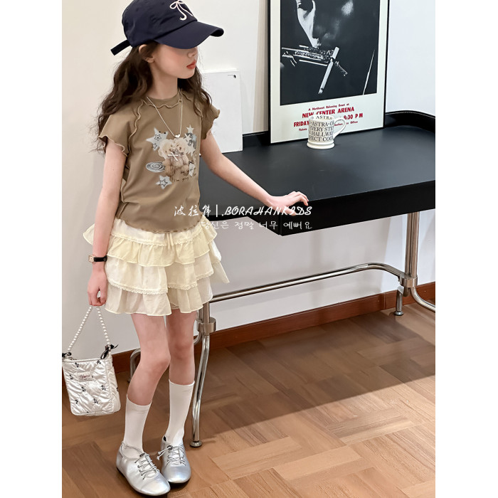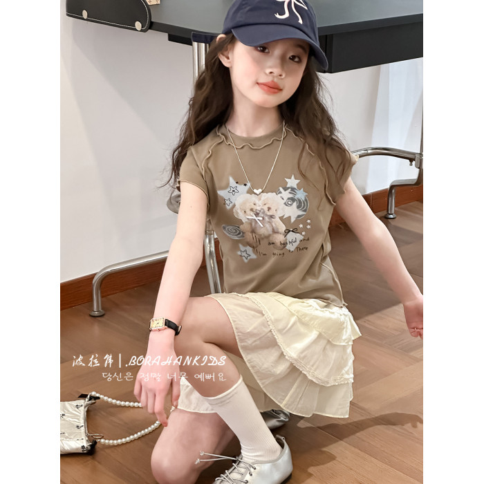 波拉韓女童夏季短袖小女孩溫柔T恤2025新款兒童短款打底t修身上衣