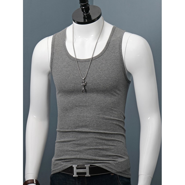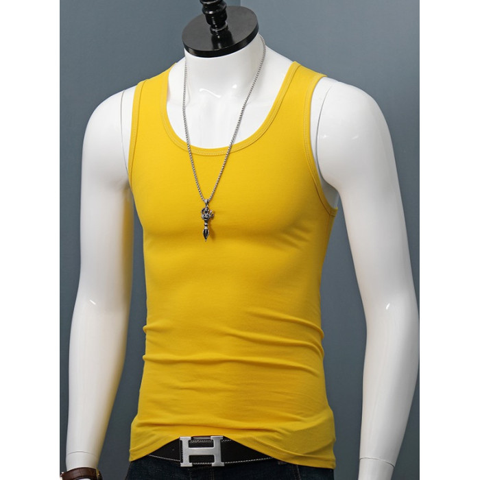 Home Daily~夏季純棉背心男士寬肩修身運動健身大碼無袖打底汗衫