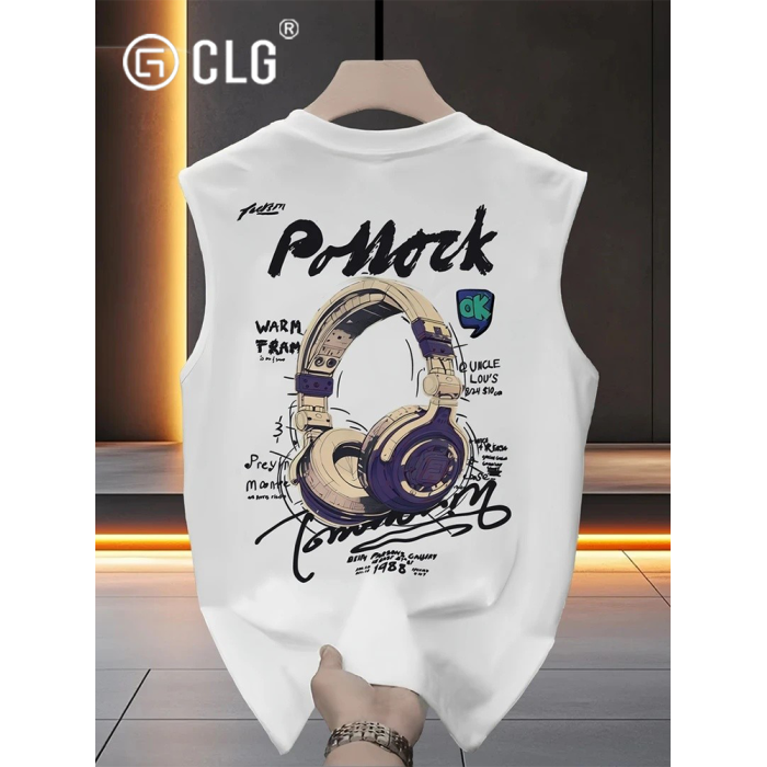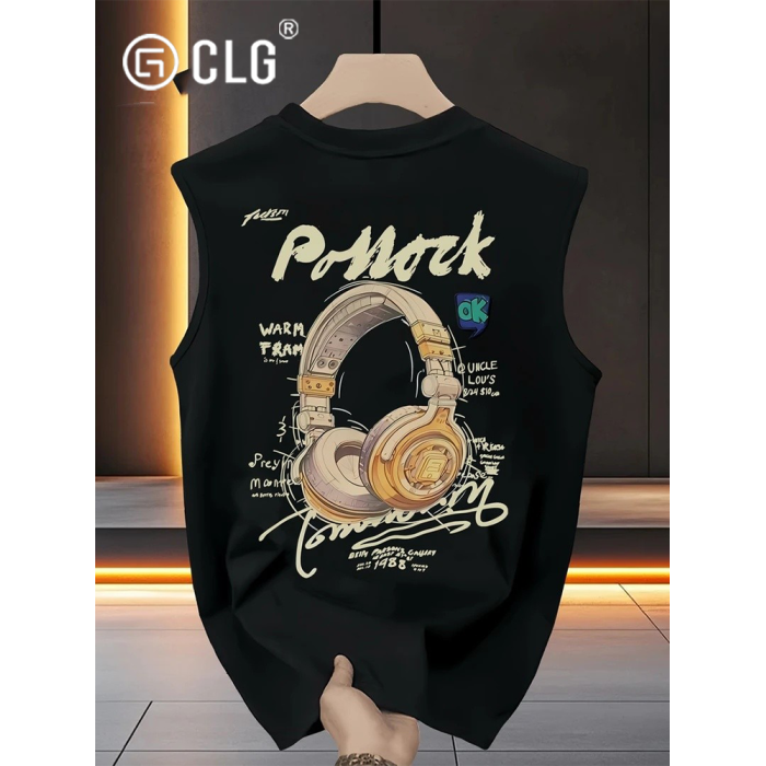 香港CLG潮牌新款重磅圓領背心無袖t恤夏寬松休閒男士坎肩汗衫上衣