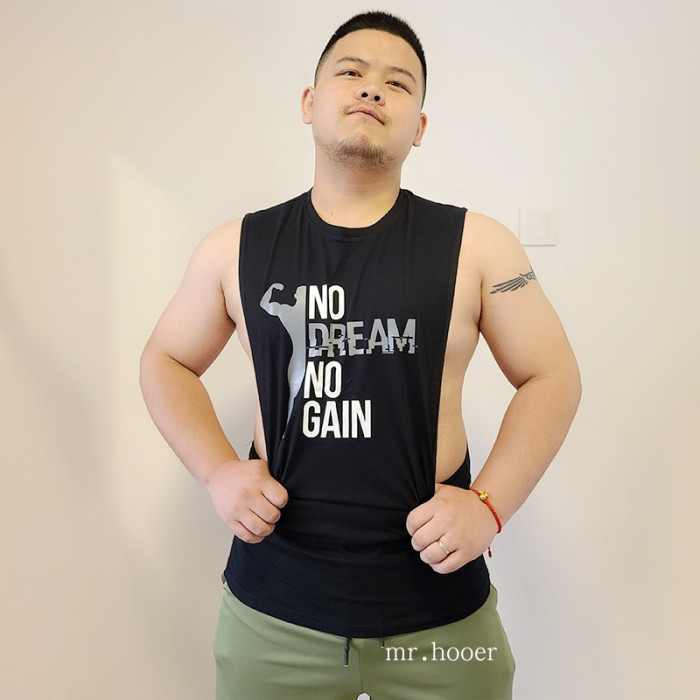 虎爾先生夏季男士純棉無袖健身背心寬松大開叉性感歐美風透氣坎肩