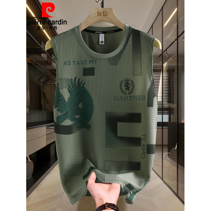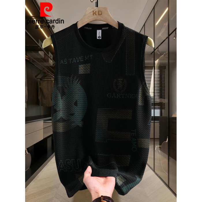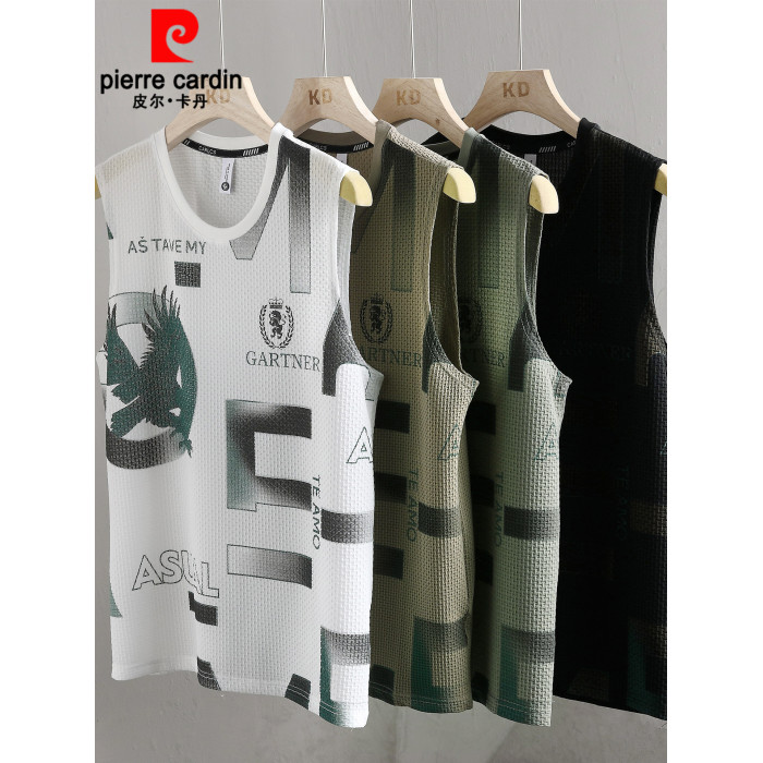 皮爾卡丹休閒背心男款薄款速乾打底衫寬松印花透氣坎肩無袖T恤潮