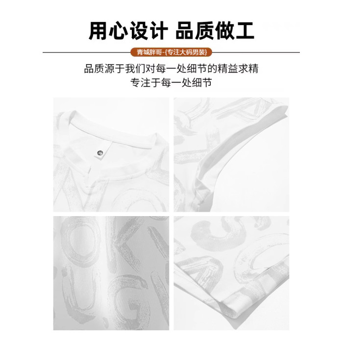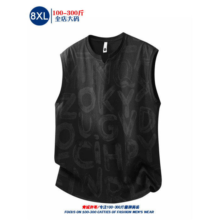 青誠胖哥大碼V領背心男夏季寬松休閒加肥加大胖子運動汗衫無袖T恤