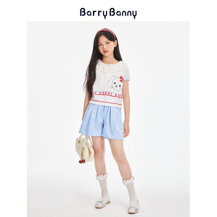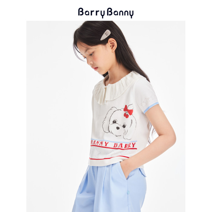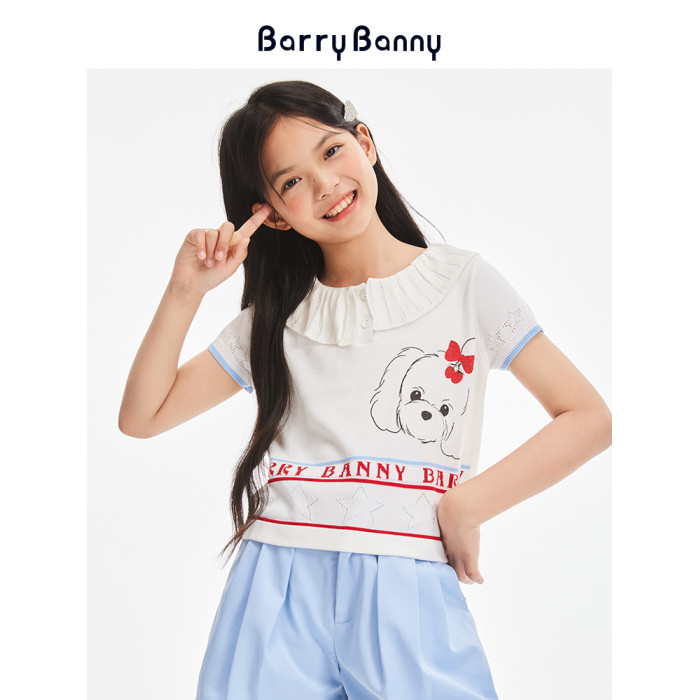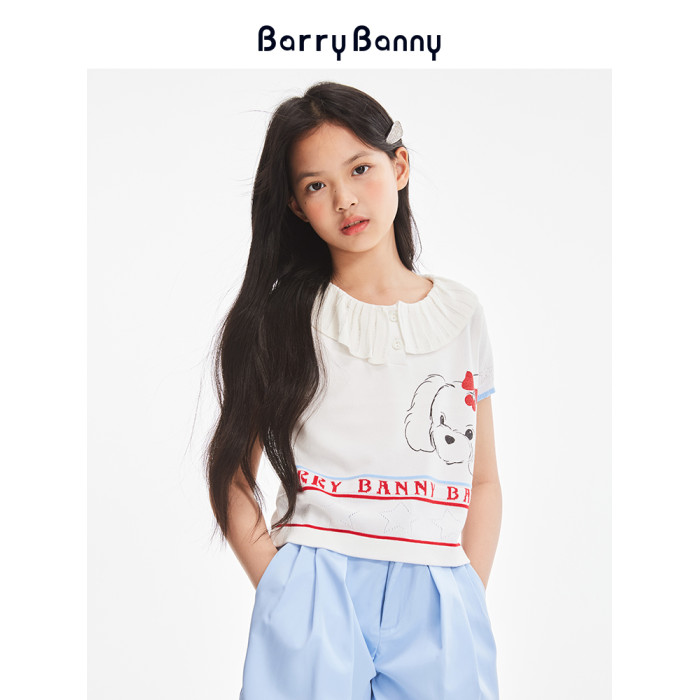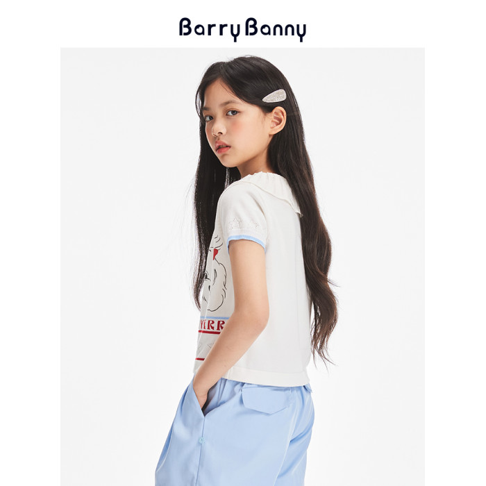 BarryBanny女童冰絲短袖T恤夏季新款中大童俏皮透氣抗皺圓領上衣