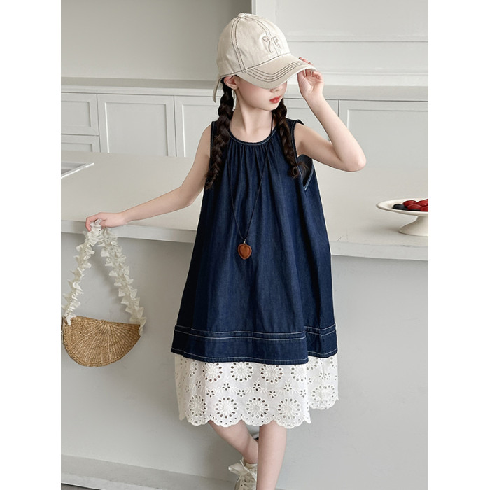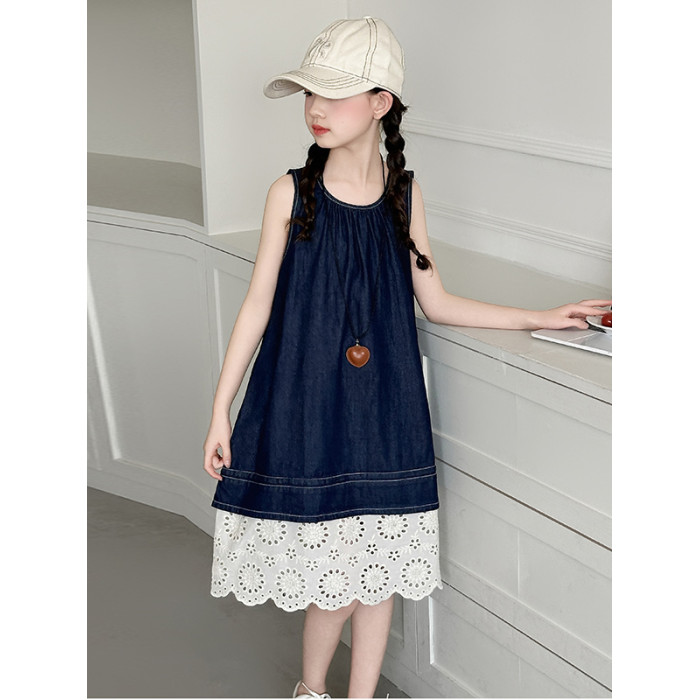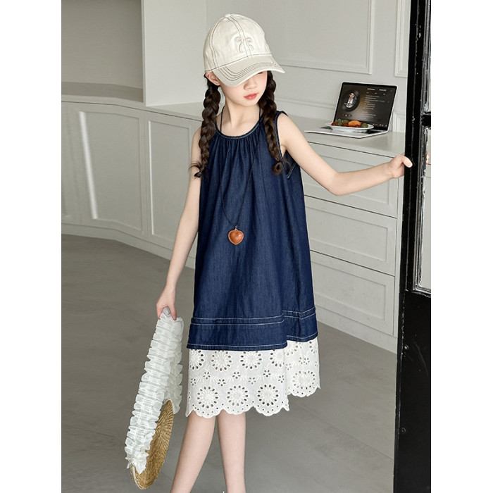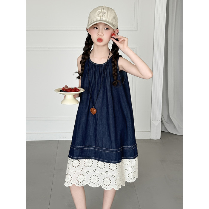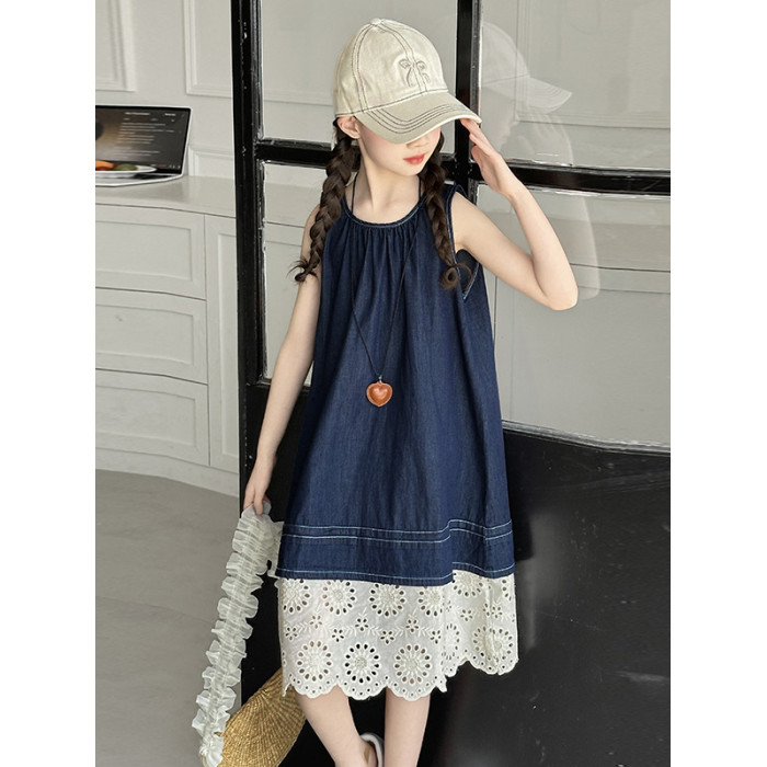 女童夏季無袖牛仔連衣裙2025新款女大童背心裙兒童度假風公主裙子