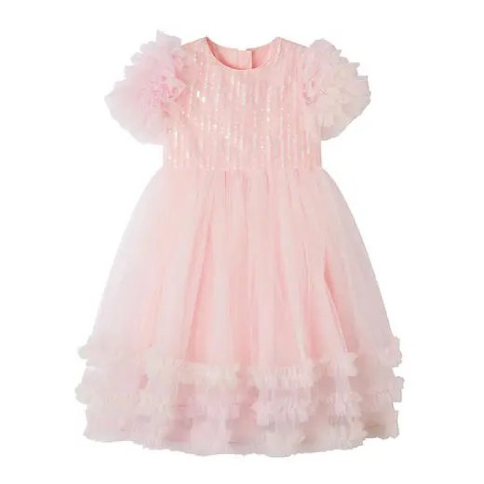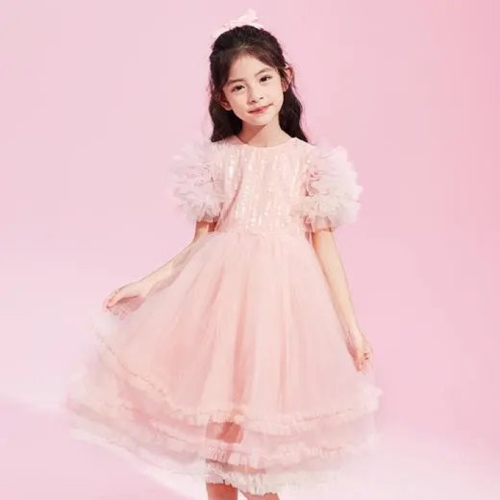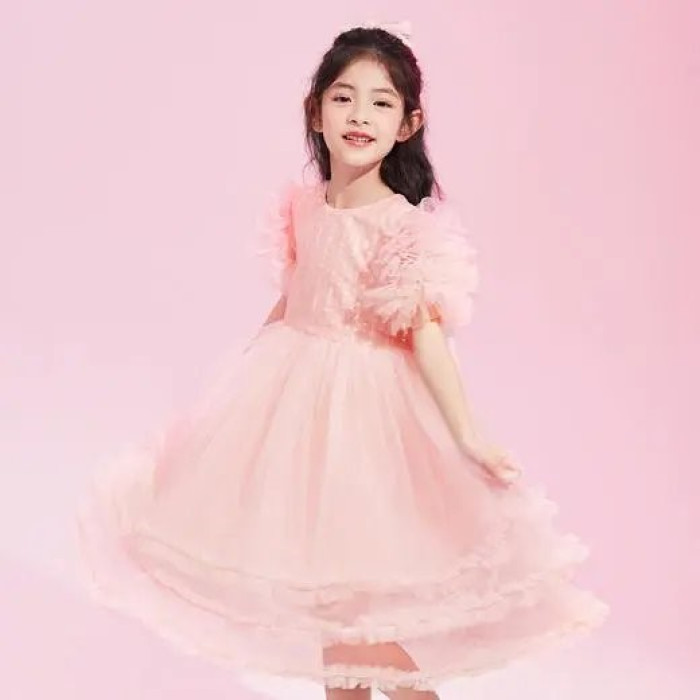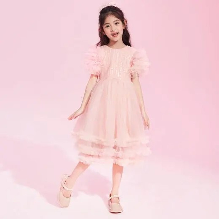 A011笛家童裝女童2025年夏兒童泡泡袖漸變公主禮服裙