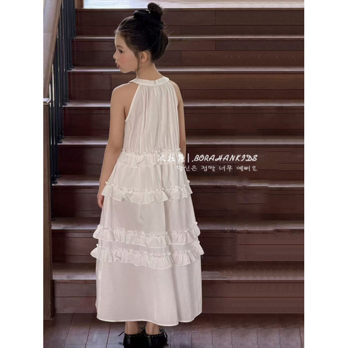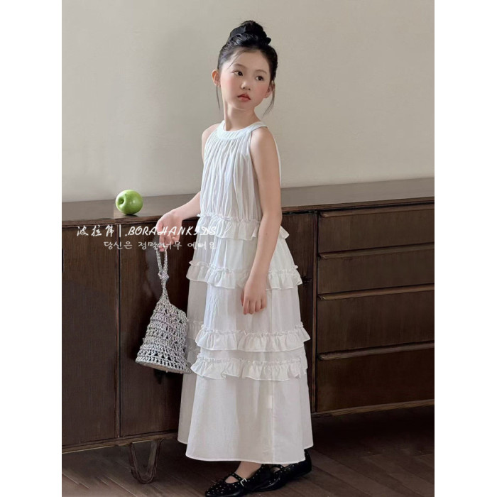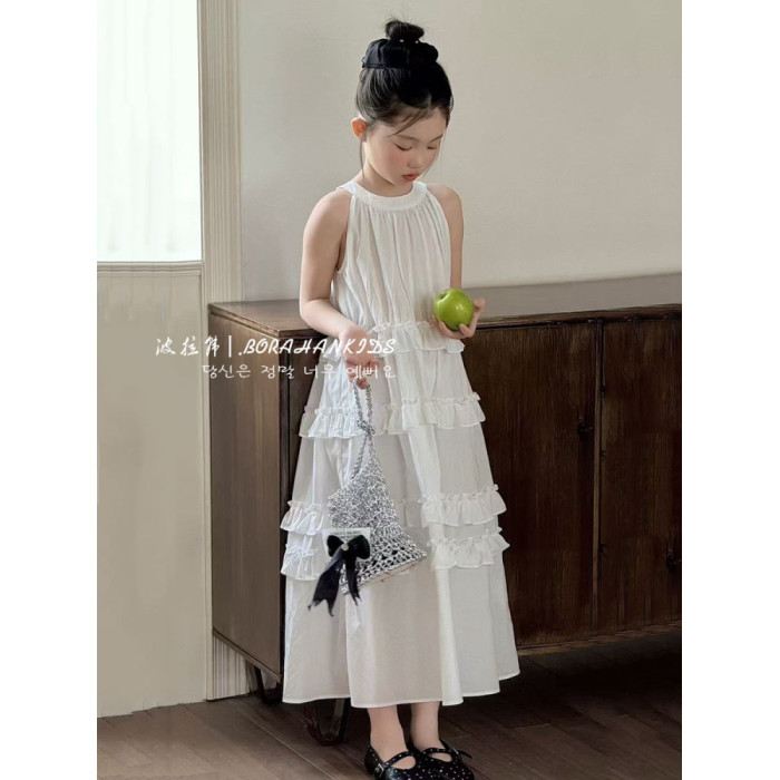 波拉韓女童連衣裙2025新款兒童夏季裙子中大童洋氣背心裙仙氣長裙
