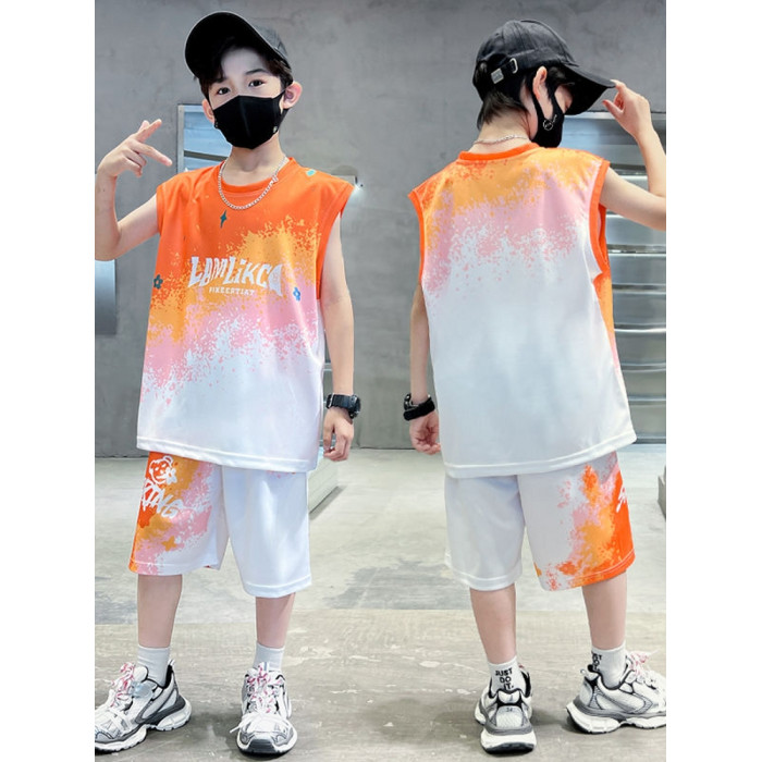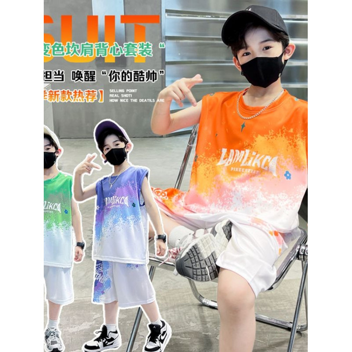安哼安哼男童籃球服夏裝套裝2025新款無袖兒童男孩夏季帥氣洋氣運