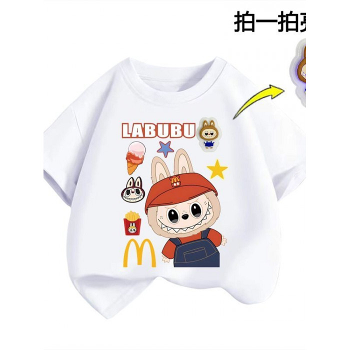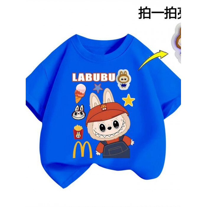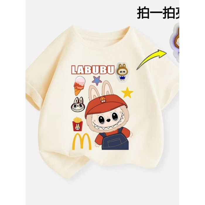 安哼安哼卡通拉布布亮燈發光男童短袖新款兒童純棉2025夏季痞酷薯