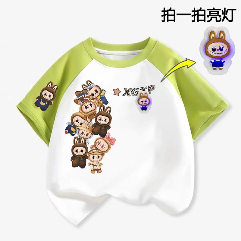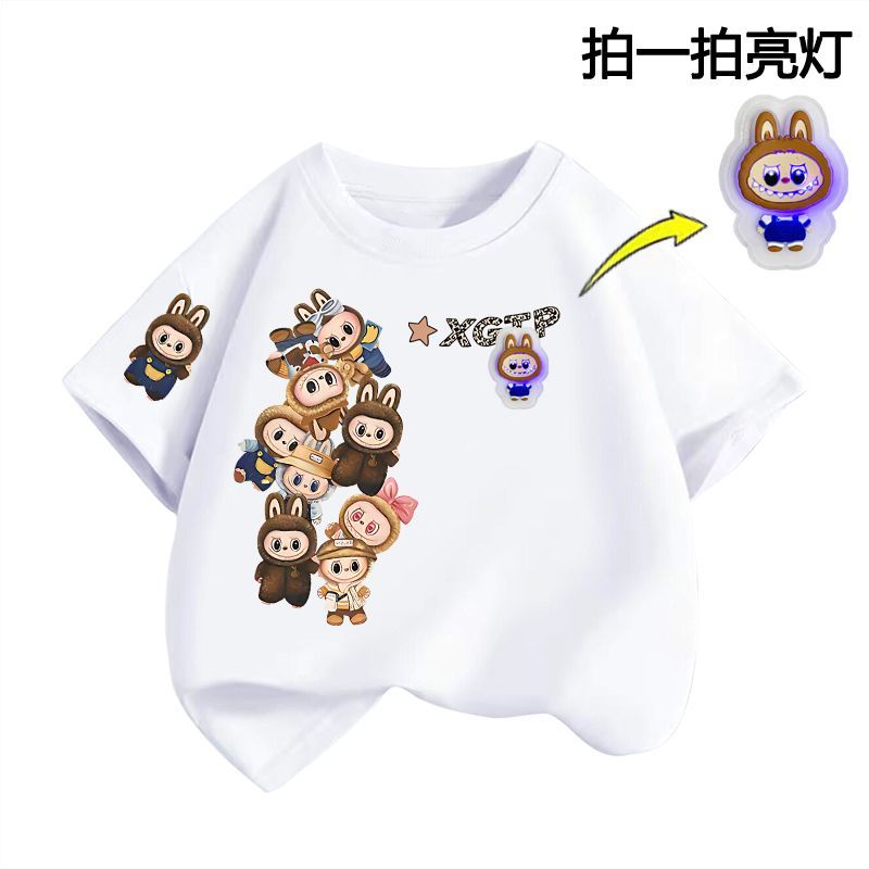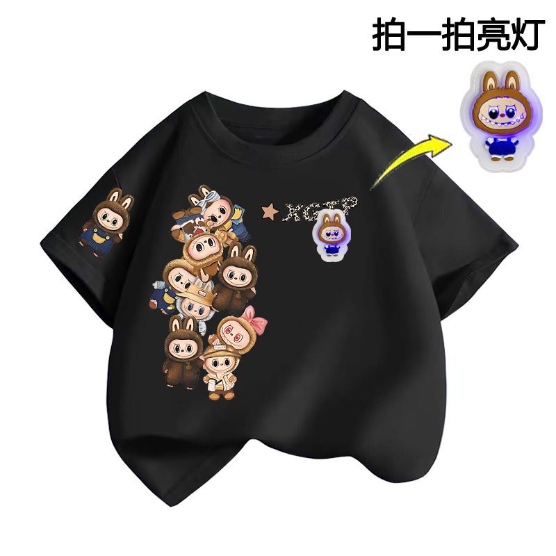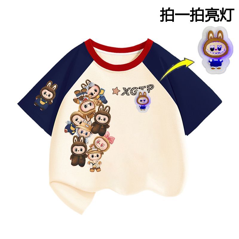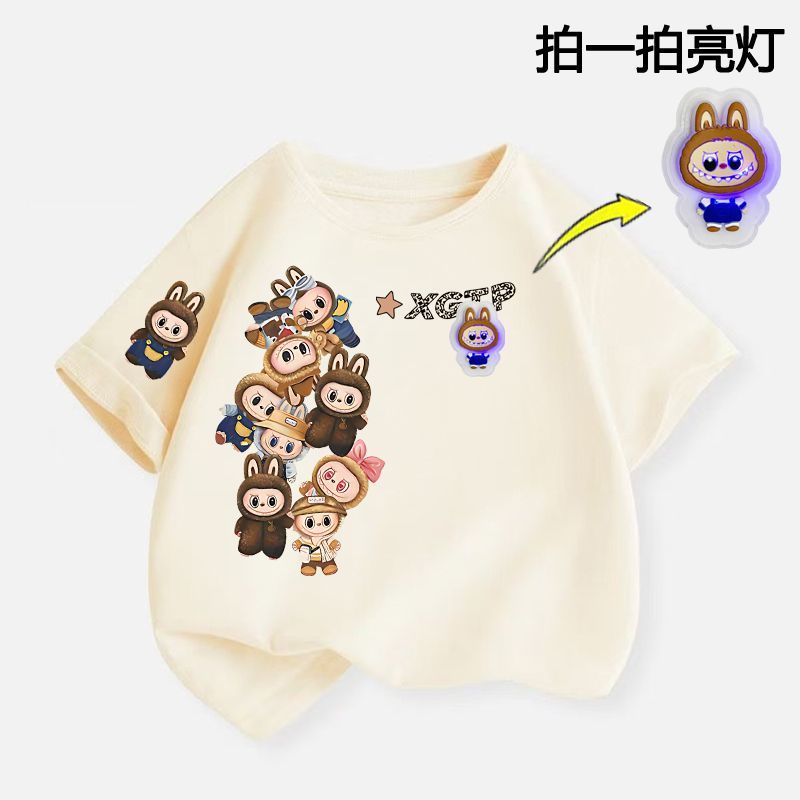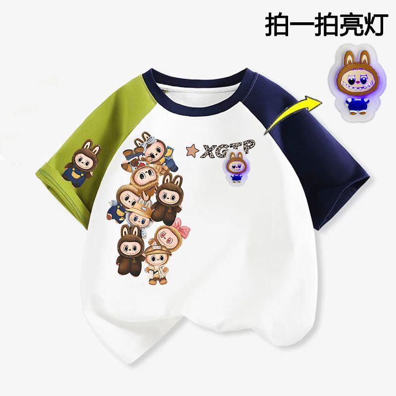 安哼安哼卡通拉布布亮燈男童帥氣短袖2025純棉夏季中大童新款T恤