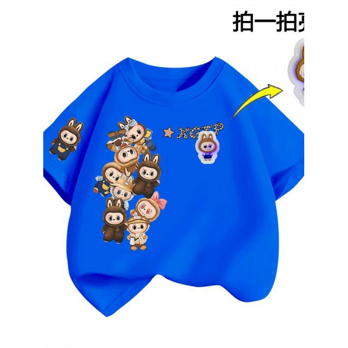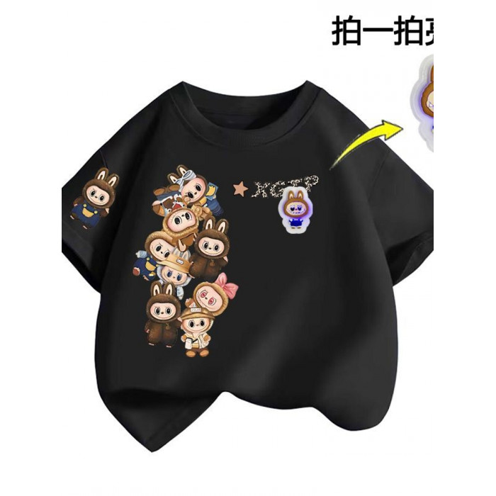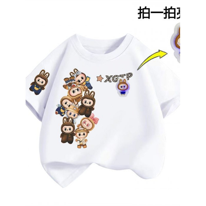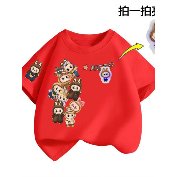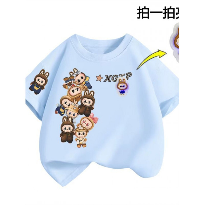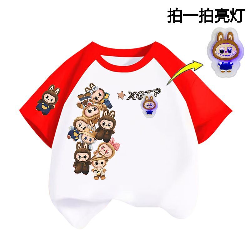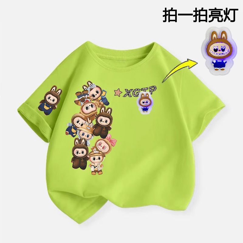 安哼安哼卡通拉布布亮燈男童帥氣短袖2025純棉夏季中大童新款T恤