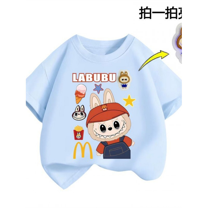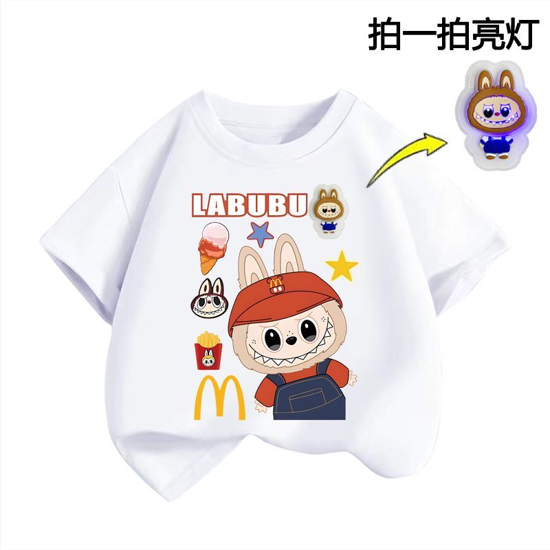 安哼安哼卡通拉布布亮燈發光男童短袖新款兒童純棉2025夏季痞酷薯