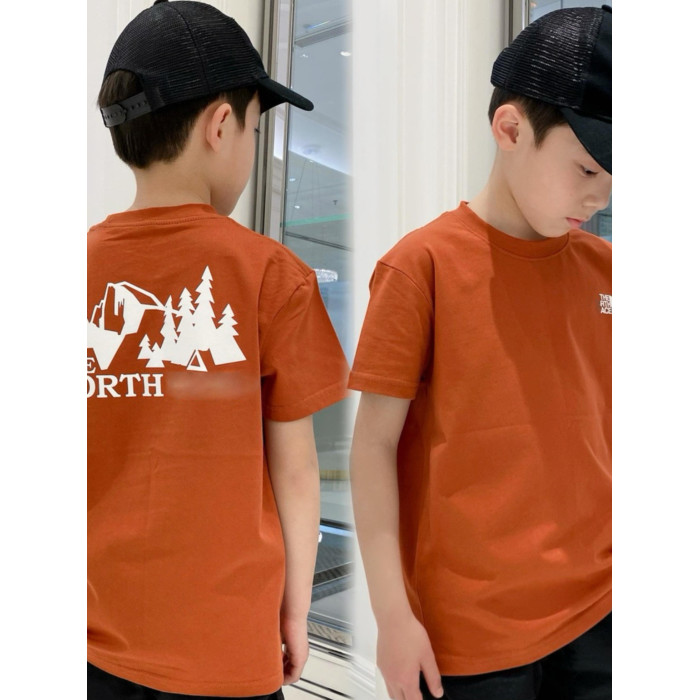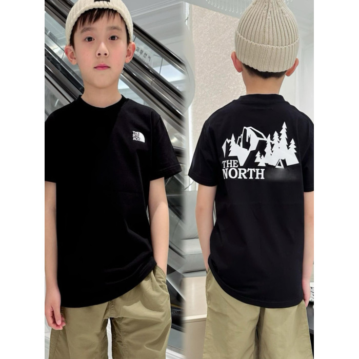2025夏天新款純棉短袖T恤經典山峰男童男生口袋休閒純色圓領上衣