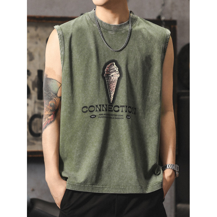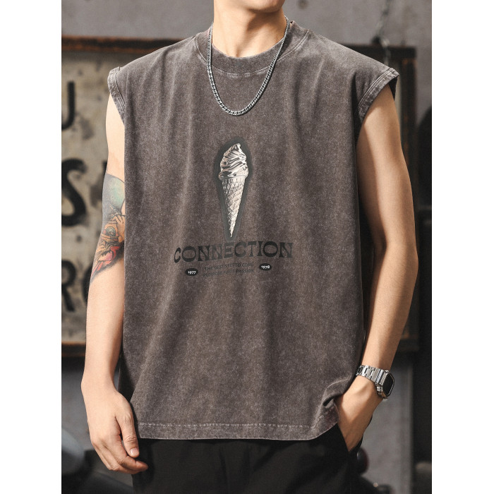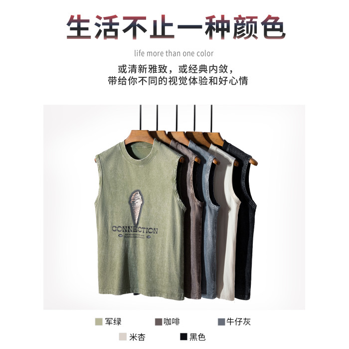 健身背心男款潮流痞帥寬松大碼印花上衣純棉圓領坎肩夏季無袖T恤
