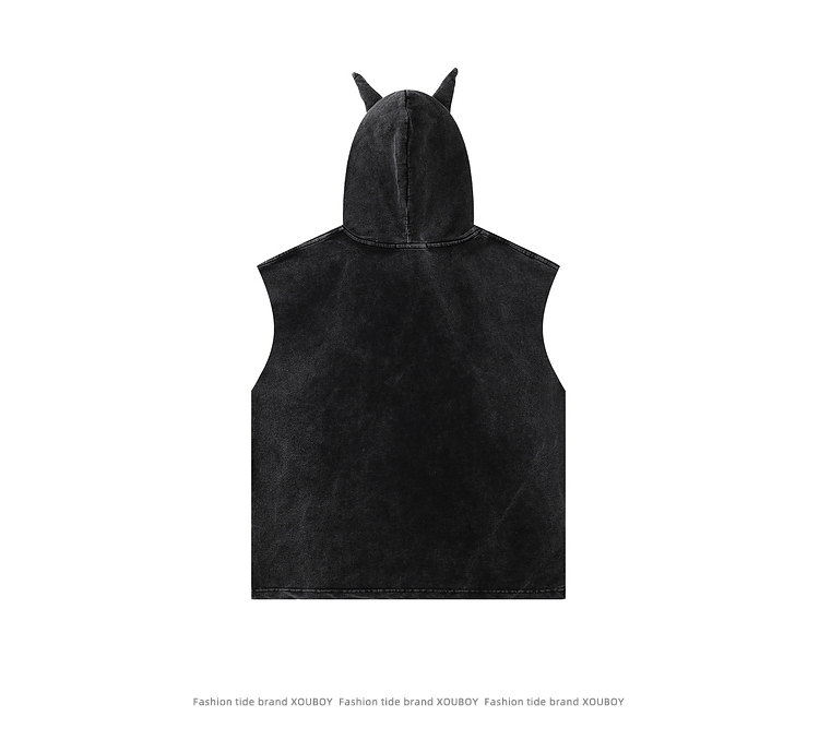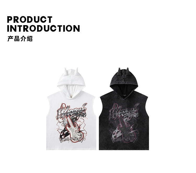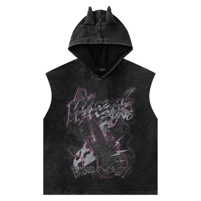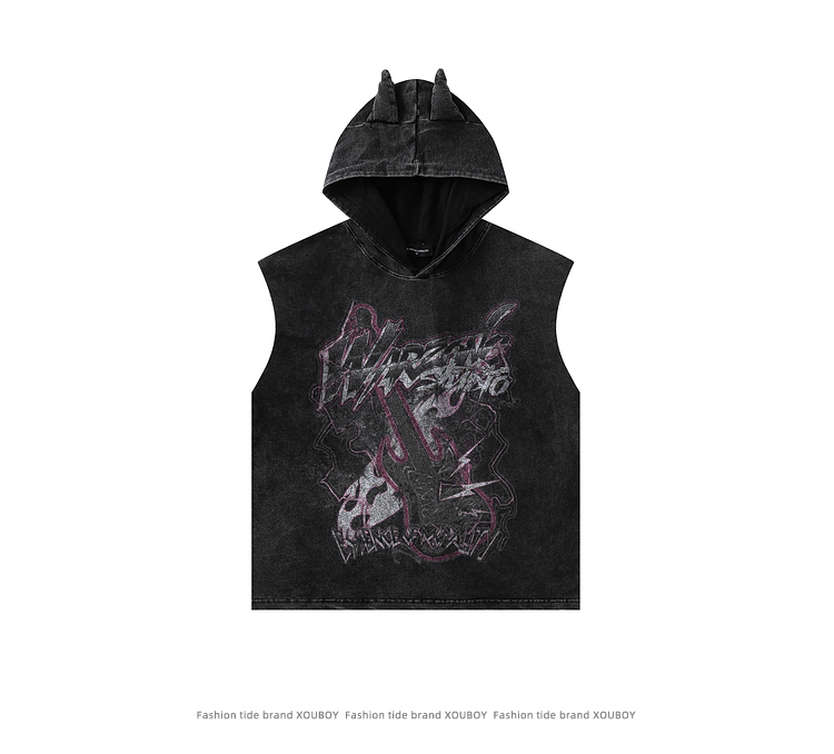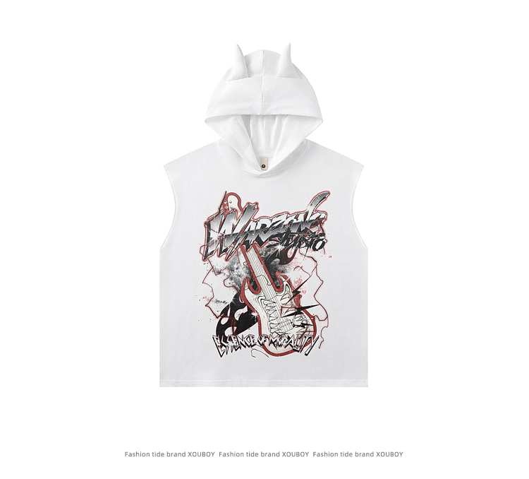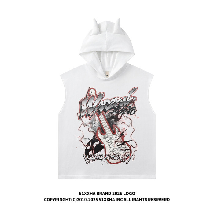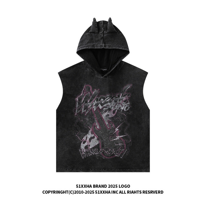 51嘻哈高街vibe吉他印花連帽背心坎肩男美式街頭小衆寬松無袖T恤