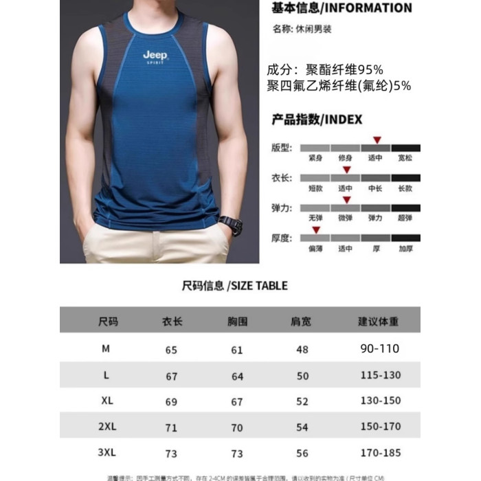 JEEP SPIRIT吉普男士冰涼運動背心夏季薄款坎肩男跨欄背心男速乾