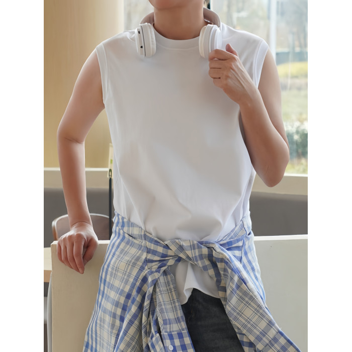 【棉小袖口防走光】中性男女運動小領口無袖背心健身坎肩側面不漏