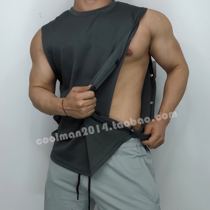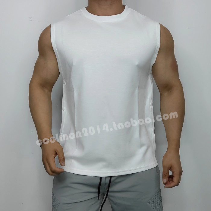 寬松背心男肌肉健身運動T恤無袖坎肩暗釦可側開百搭休閒彈力棉潮