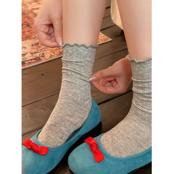 "miu系千金"灰色襪子女中筒波點純棉堆堆襪春秋款花邊芭蕾風長襪