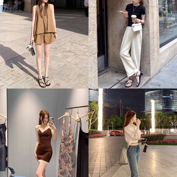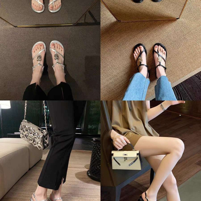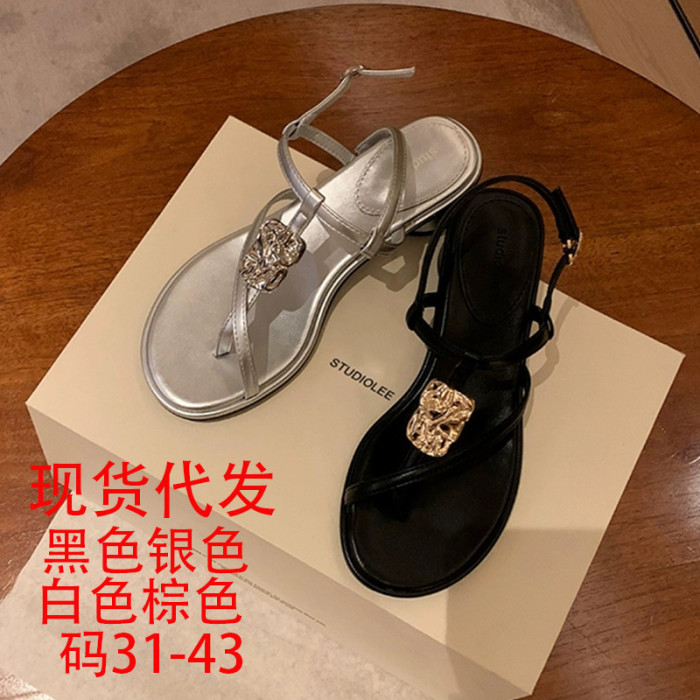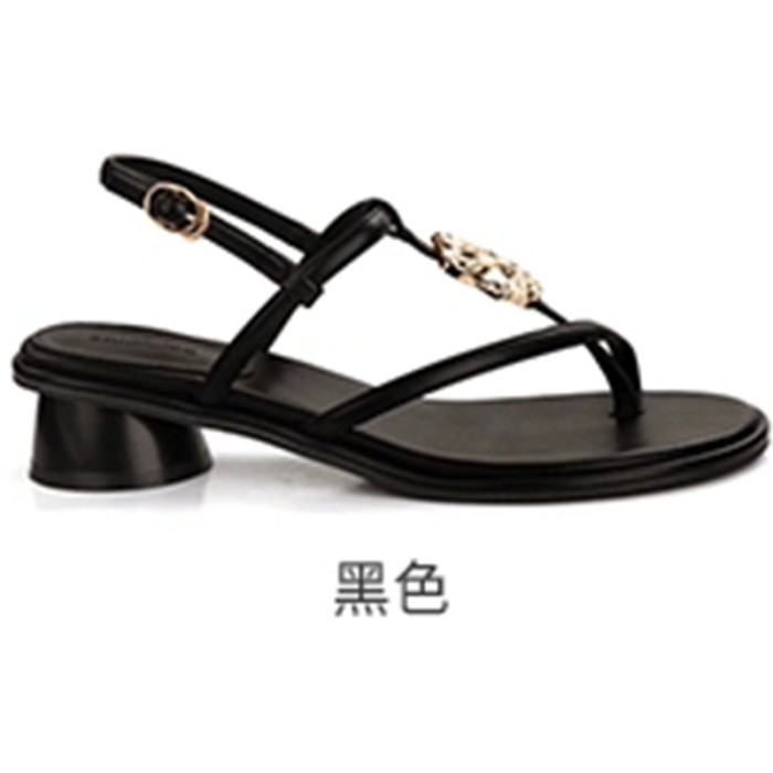 葡萄媽studiolee 度假風細帶夾趾金屬釦粗跟涼鞋女款2024新款夏季