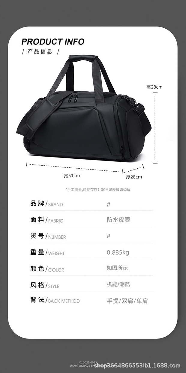 單肩大容量短途旅行手提包行李收納出差登機包乾溼分離斜背健身包