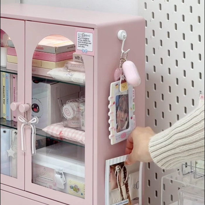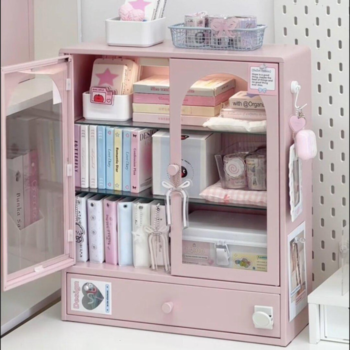 鉄皮收納櫃-粉色(帶吸頂燈)