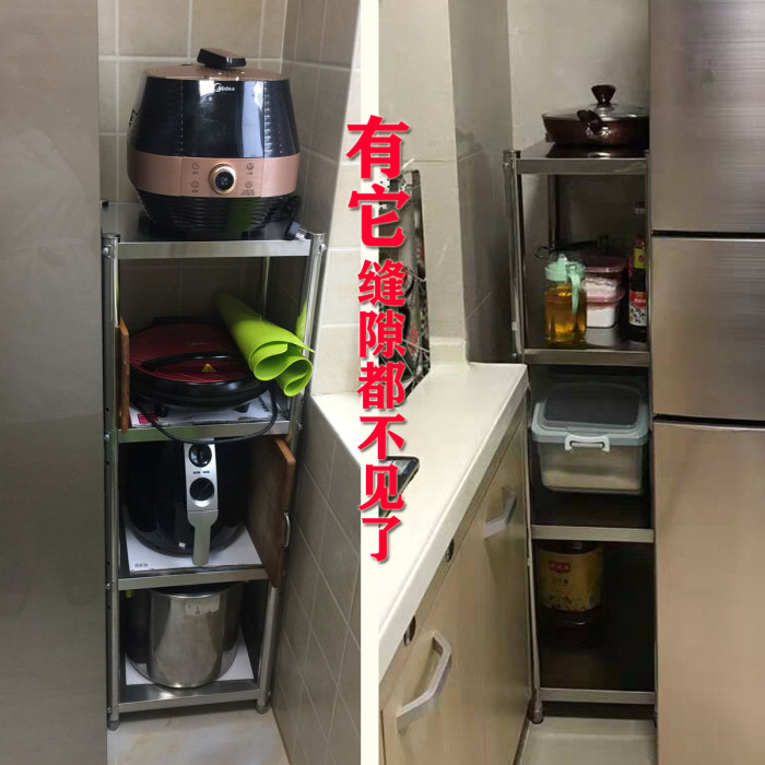 20CM不鏽鋼廚房置物架落地多層25夾縫儲櫃貨架4層冰箱側小收納架