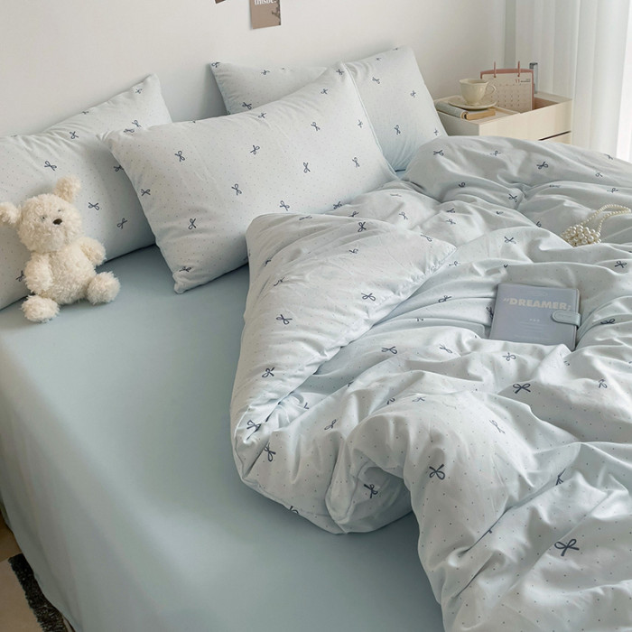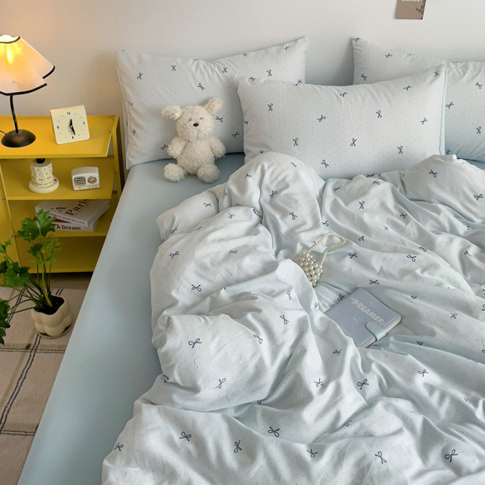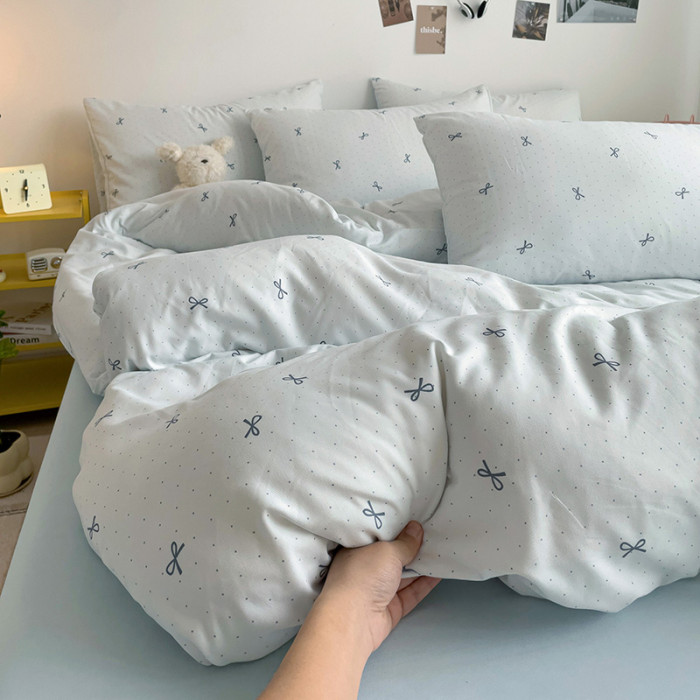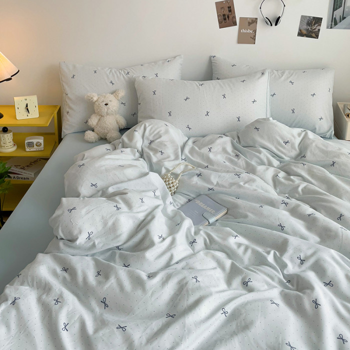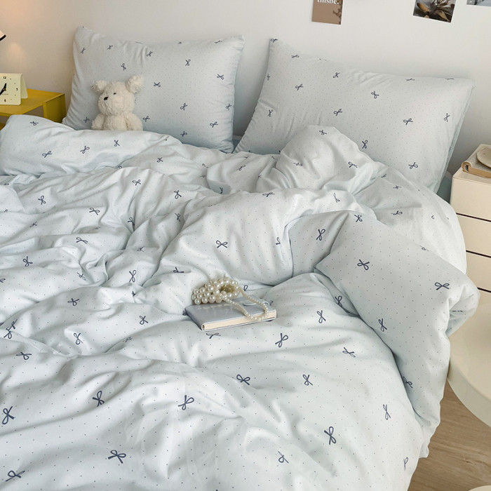 ins文藝小清新蝴蝶結甜美印花超軟床單四件套宿舍百搭款1.2米床品
