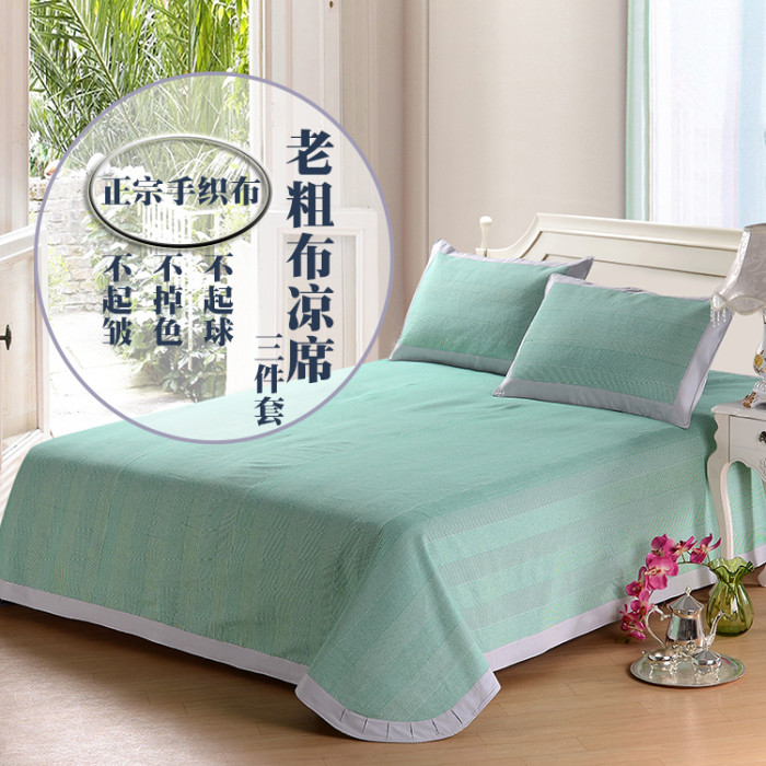 手工純棉老粗布涼蓆床單三件套夏季加厚加密折曡帆布1.5m1.8米床