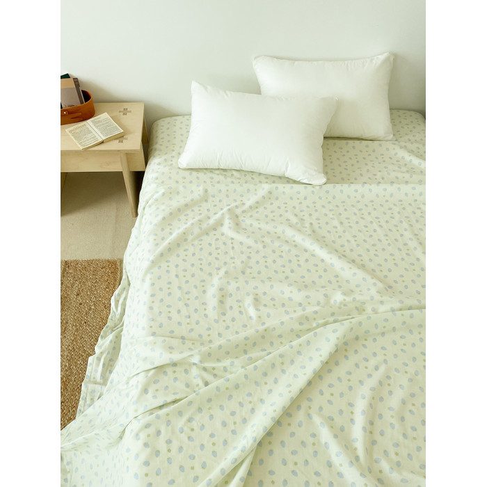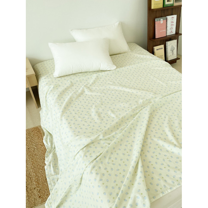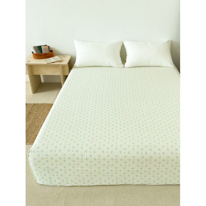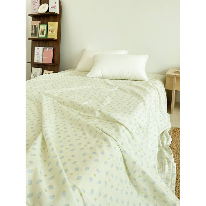 莓煩惱 復古藍色草莓碎花雙層紗床單床笠單100棉雙人溫柔綠學生床