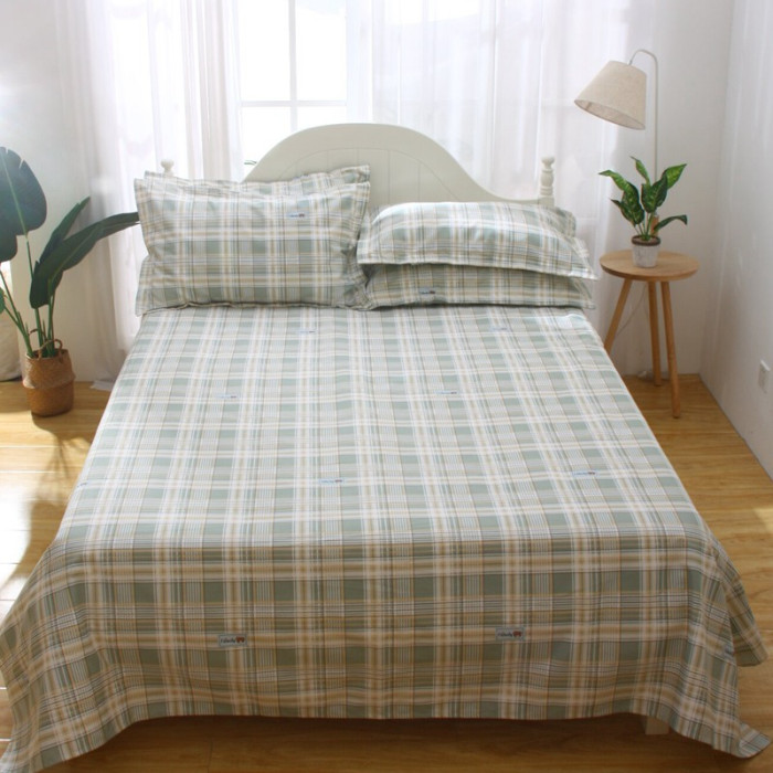 高檔老粗布床單單件純棉100全棉加厚加密簡約格子三件套炕單被單