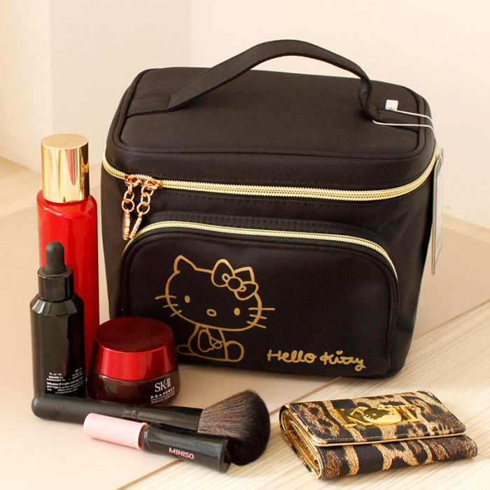 可愛HELLO KITTTY多隔層手提拉鍊印花化妝包收納包滌綸布洗漱包