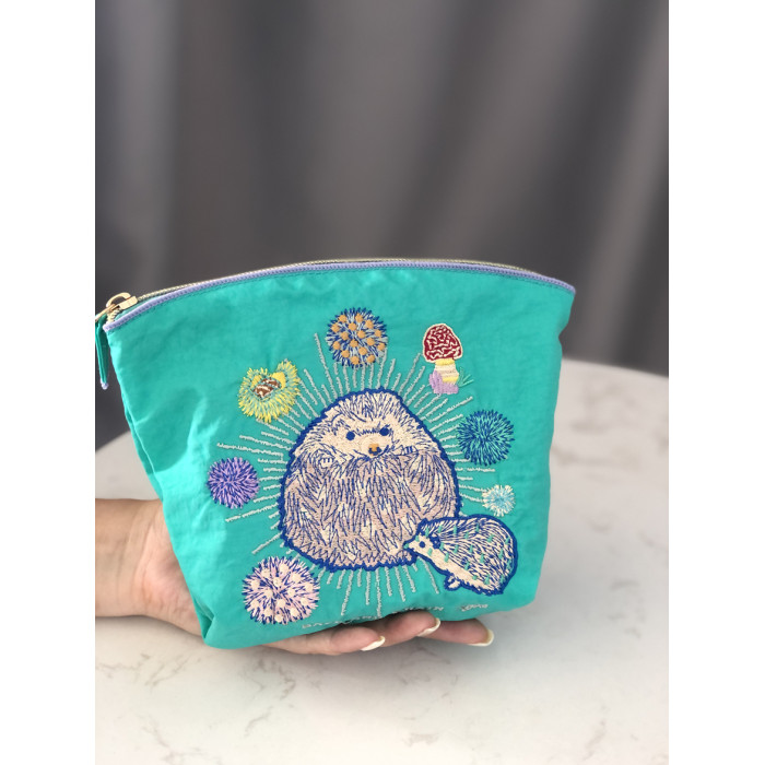 小衆刺綉收納袋化妝包女ball chain新款刺蝟防潑水尼龍化妝小包