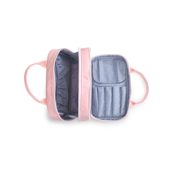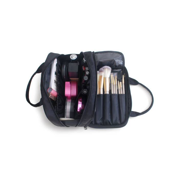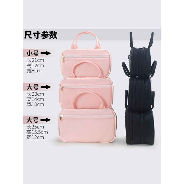 新款防水布藝實用可攜式雙層化妝包簡約多功能大容量手提收納包
