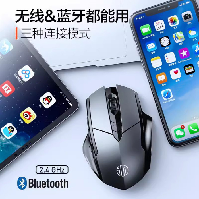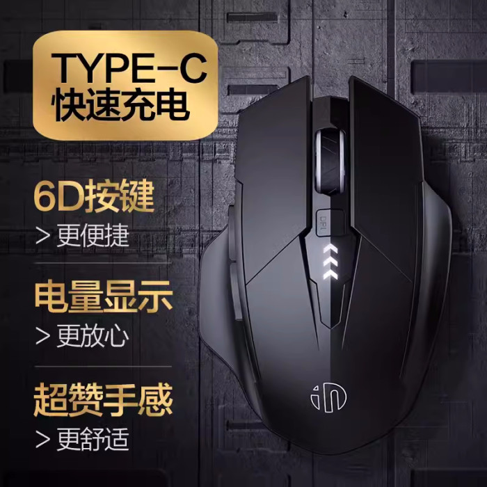 英菲克PM6無線滑鼠藍牙三模充電靜音辦公遊戯電競筆記型電腦桌上型