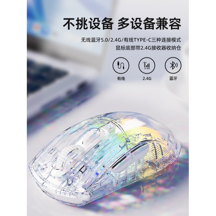 無線藍牙滑鼠透明三模辦公遊戯2024新款高顔值雙模機械電競女生