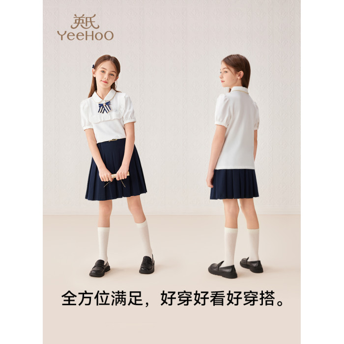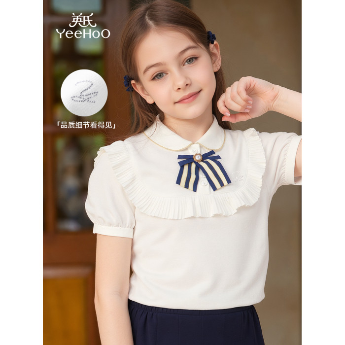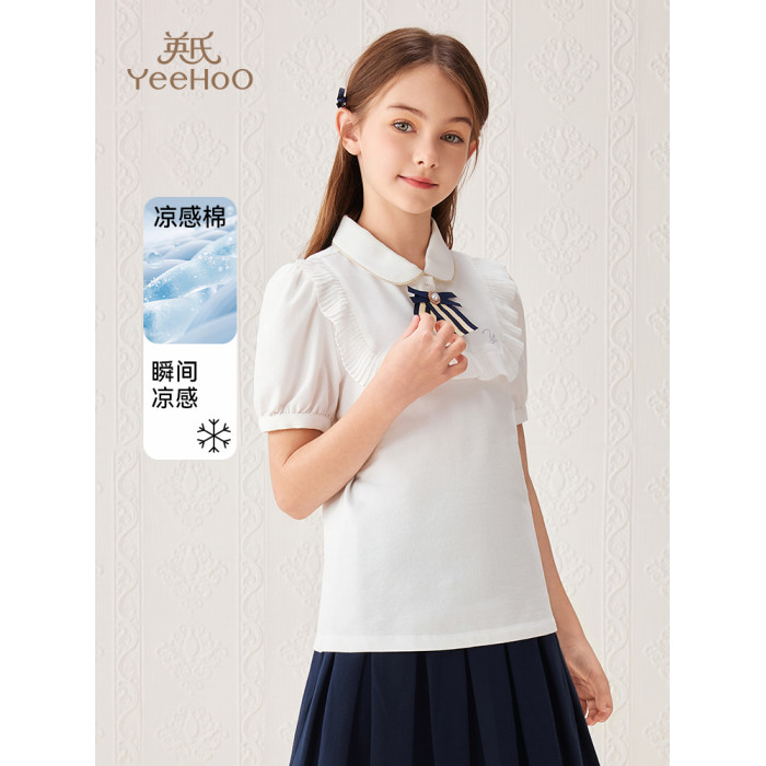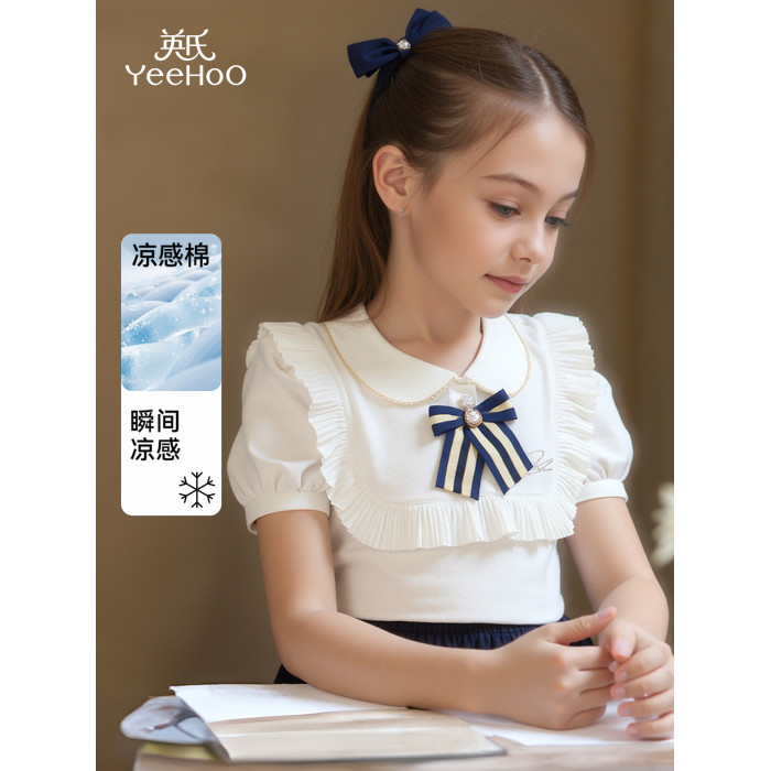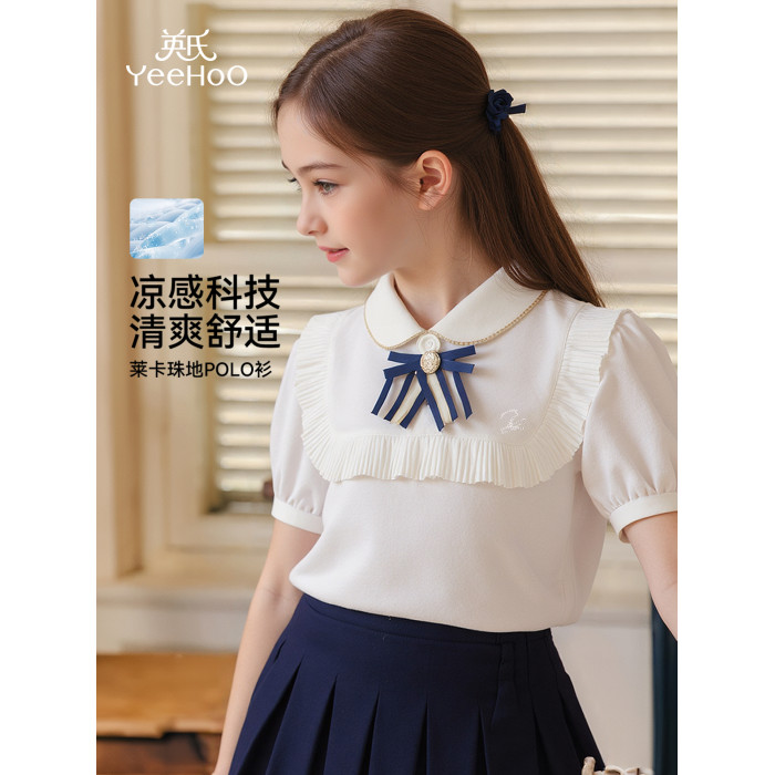 [涼感抑菌]英氏女童短袖t恤2025夏季兒童polo衫純棉娃娃領上衣潮