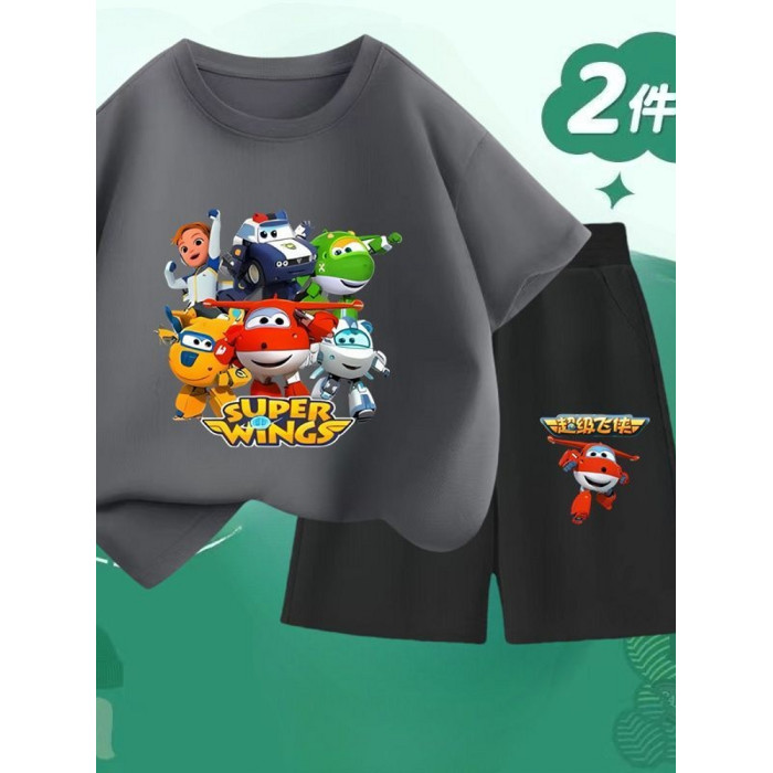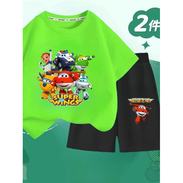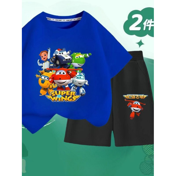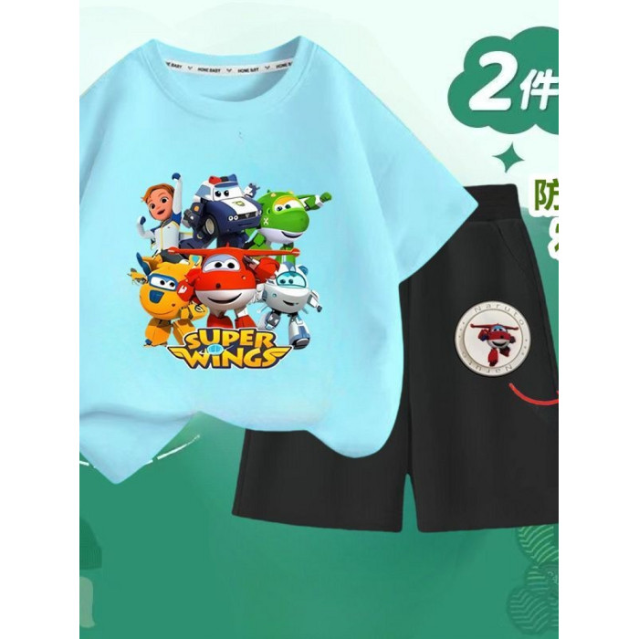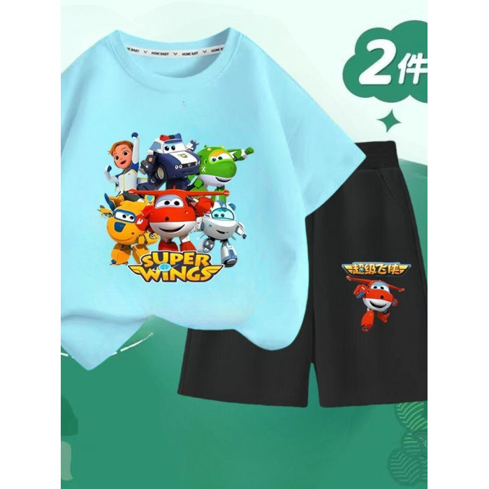 安哼安哼2025夏季新款超級飛俠亮燈純棉短袖短褲套裝男童短袖短褲