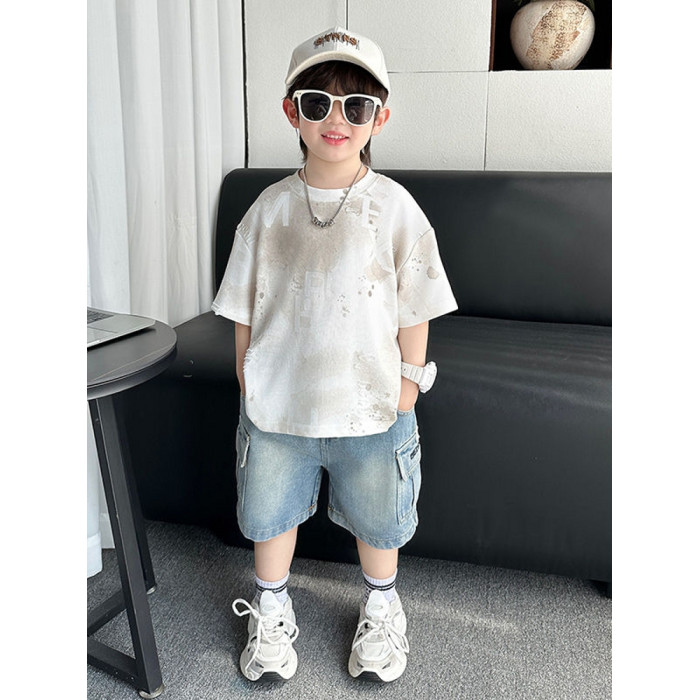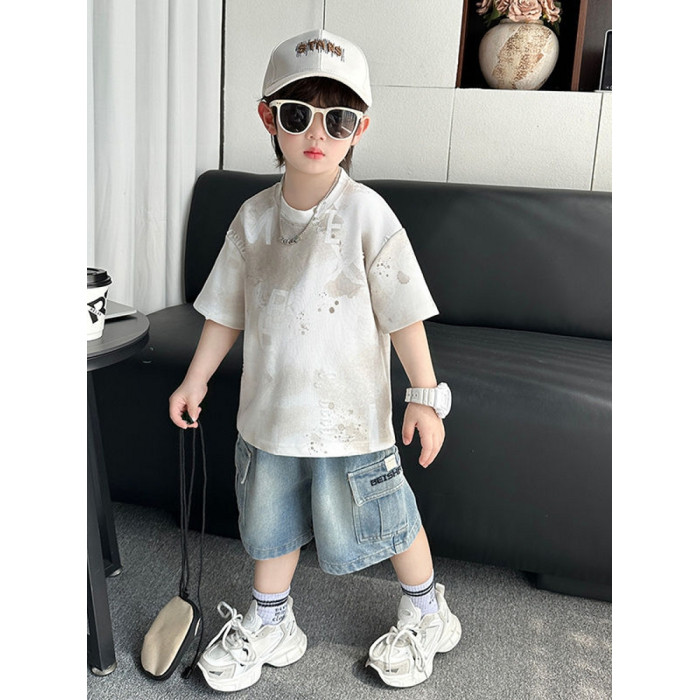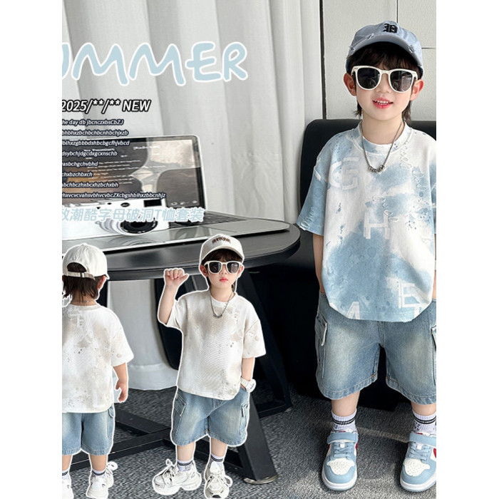 安哼安哼男童夏裝短袖套裝2025新款酷帥氣兒童T恤夏季小男孩牛仔