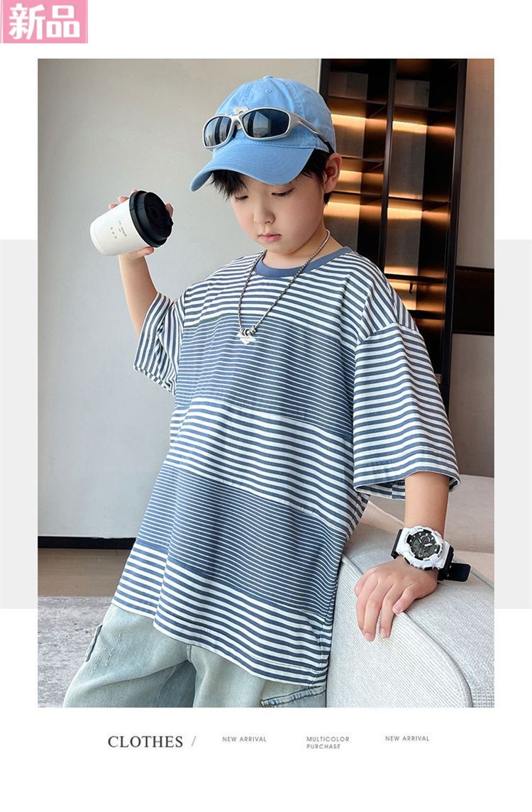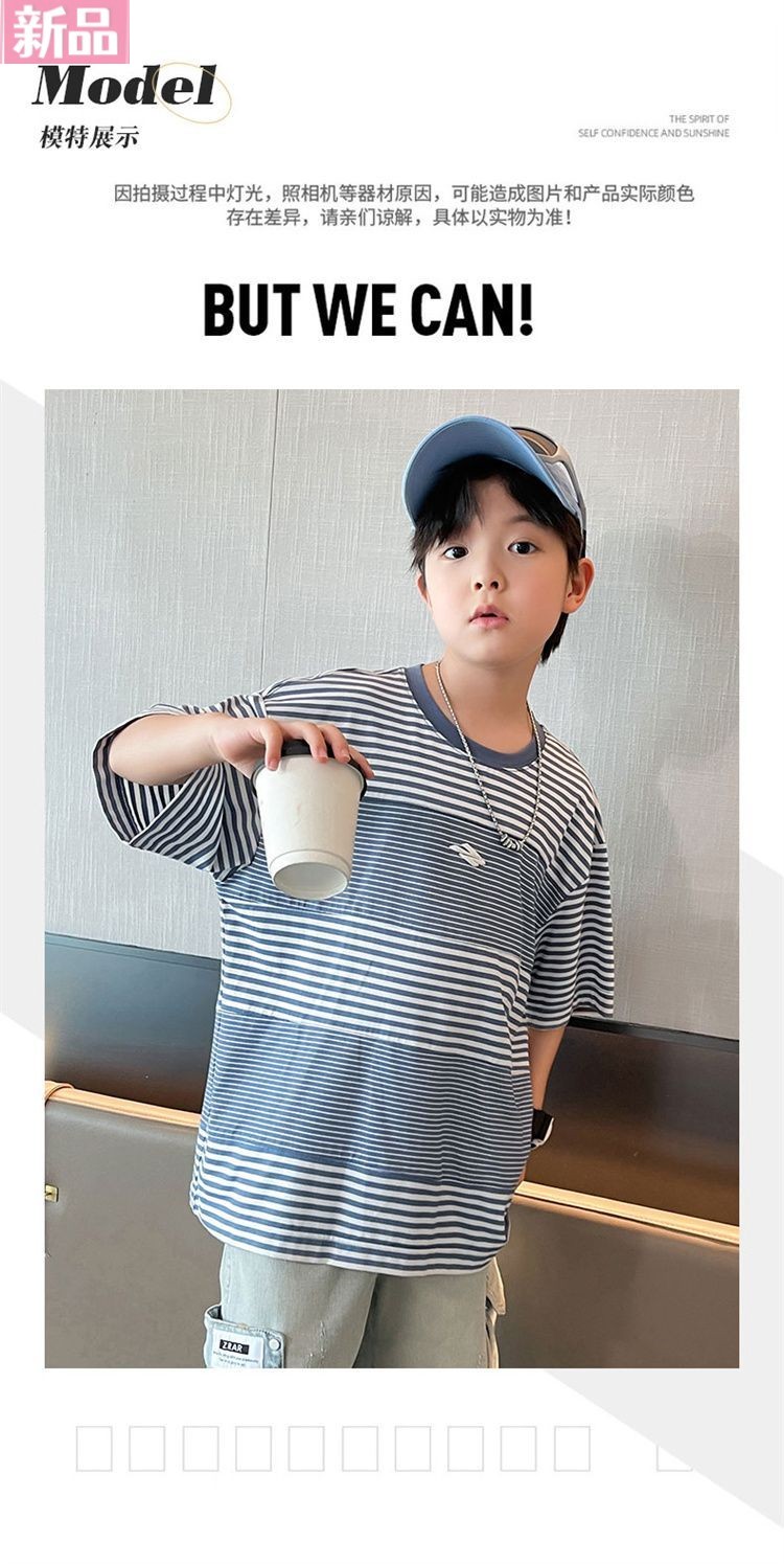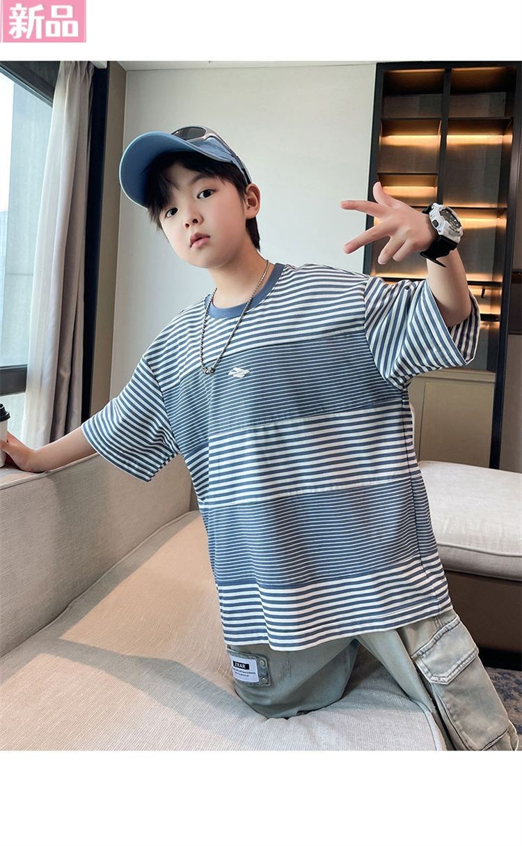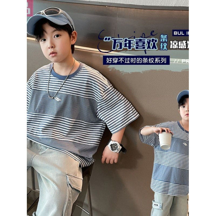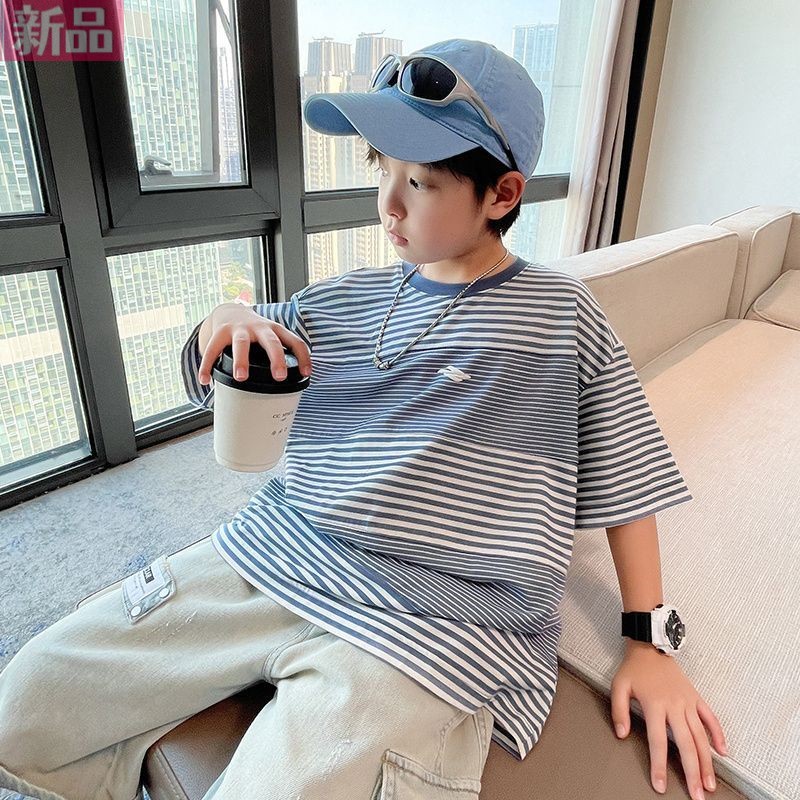 安哼安哼男童夏裝兒童2025新款短袖中大童童裝條紋夏季純棉圓領半