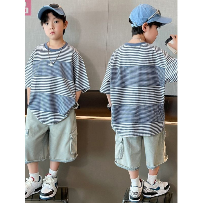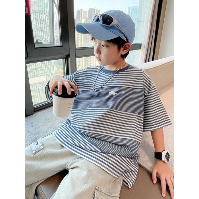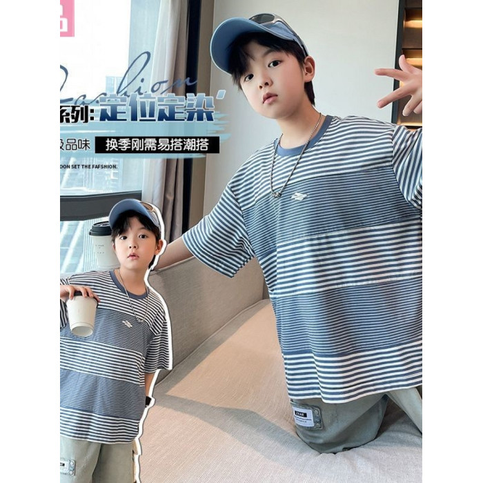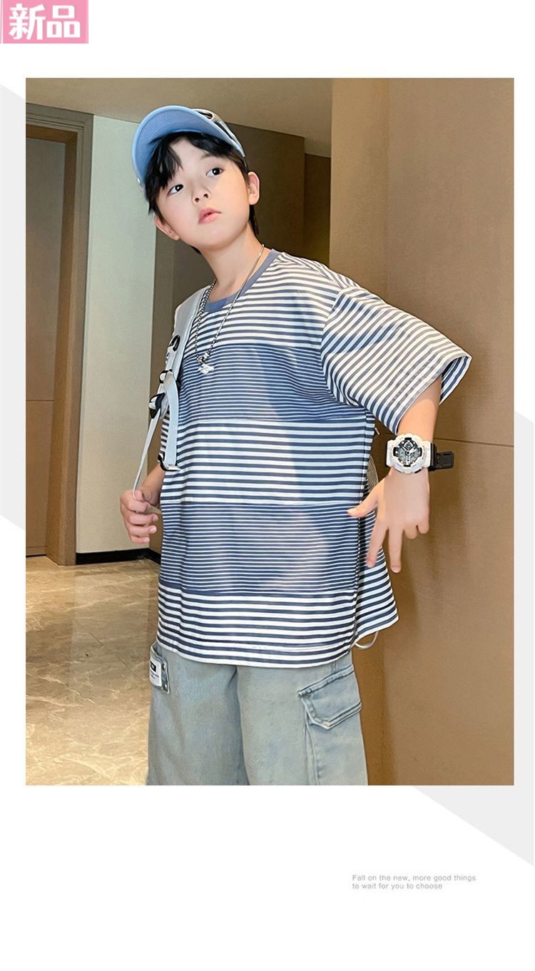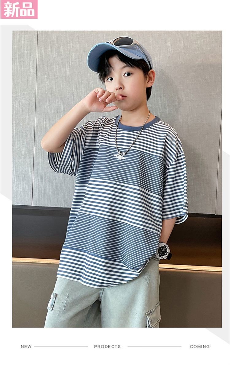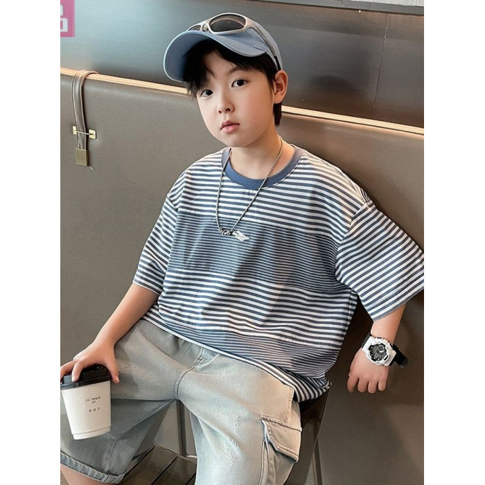 安哼安哼男童夏裝兒童2025新款短袖中大童童裝條紋夏季純棉圓領半