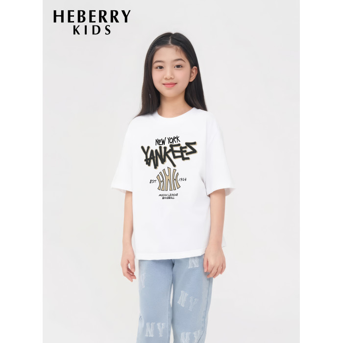 英國HEBERRY KIDS男童短袖T恤純棉2025新款中大童圓領百搭上衣夏