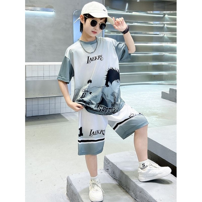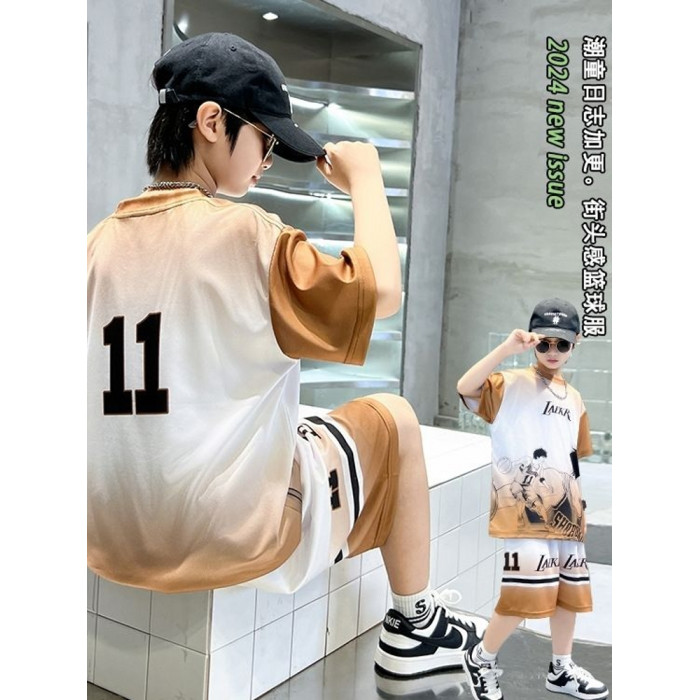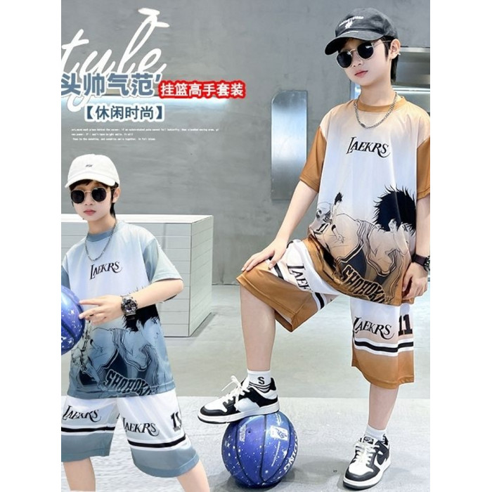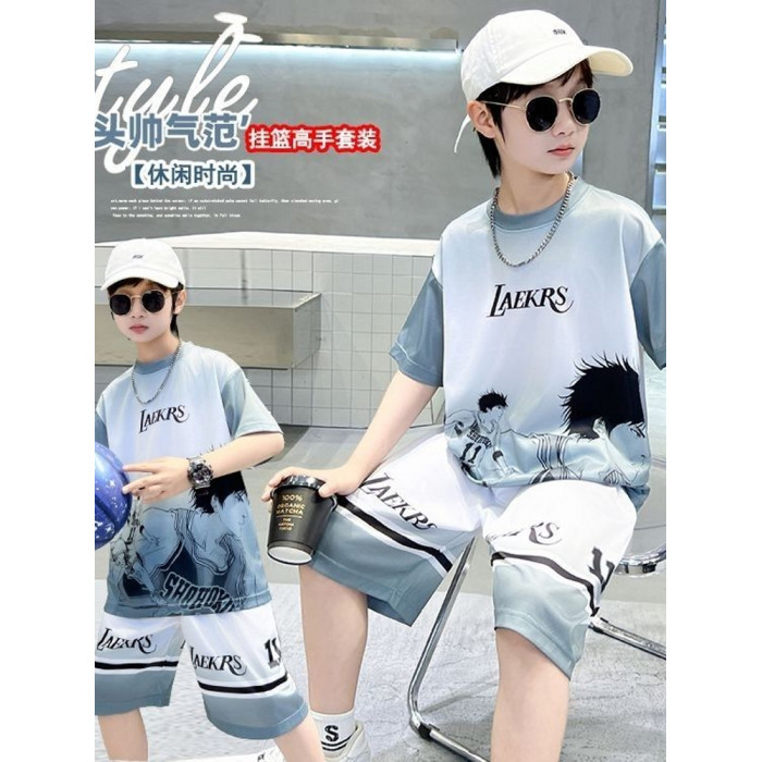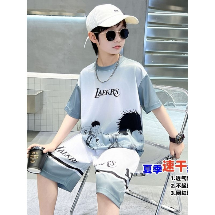 安哼安哼男童夏裝夏季速乾套裝薄款中大童運動兒童新款帥氣短袖籃